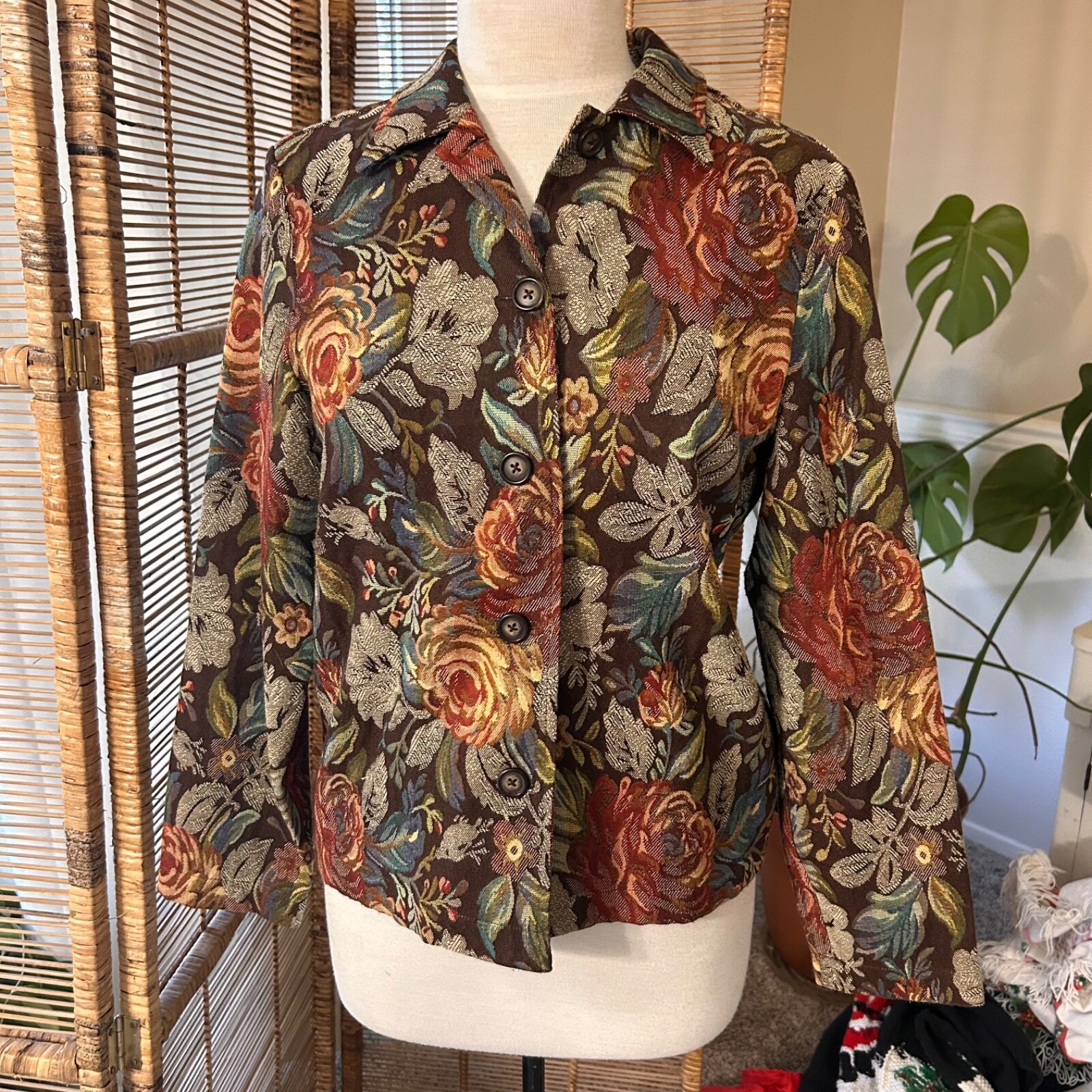 Coldwater Creek Tapestry Jacket Women's Long Sleeve Button Up Brocade Small