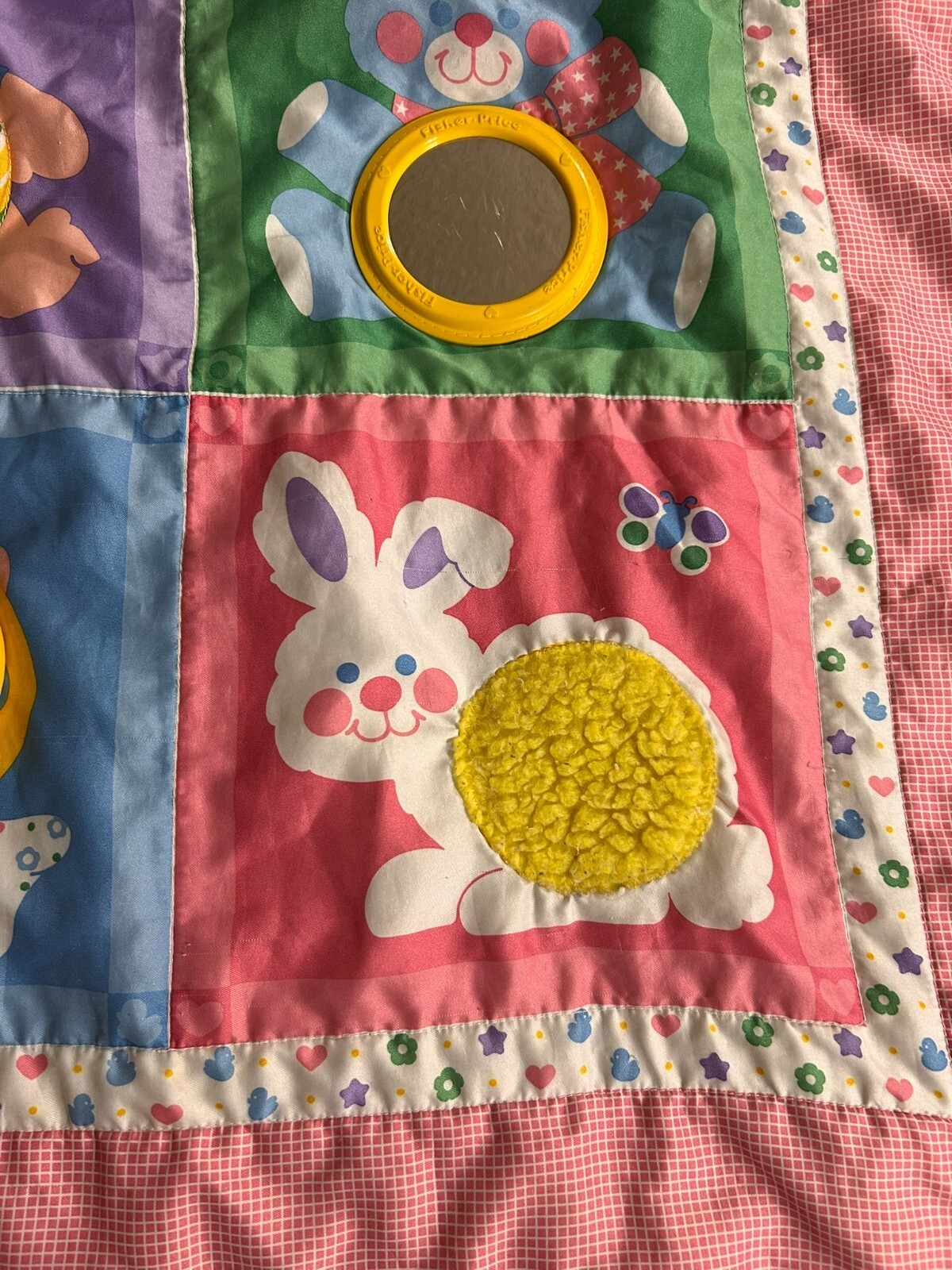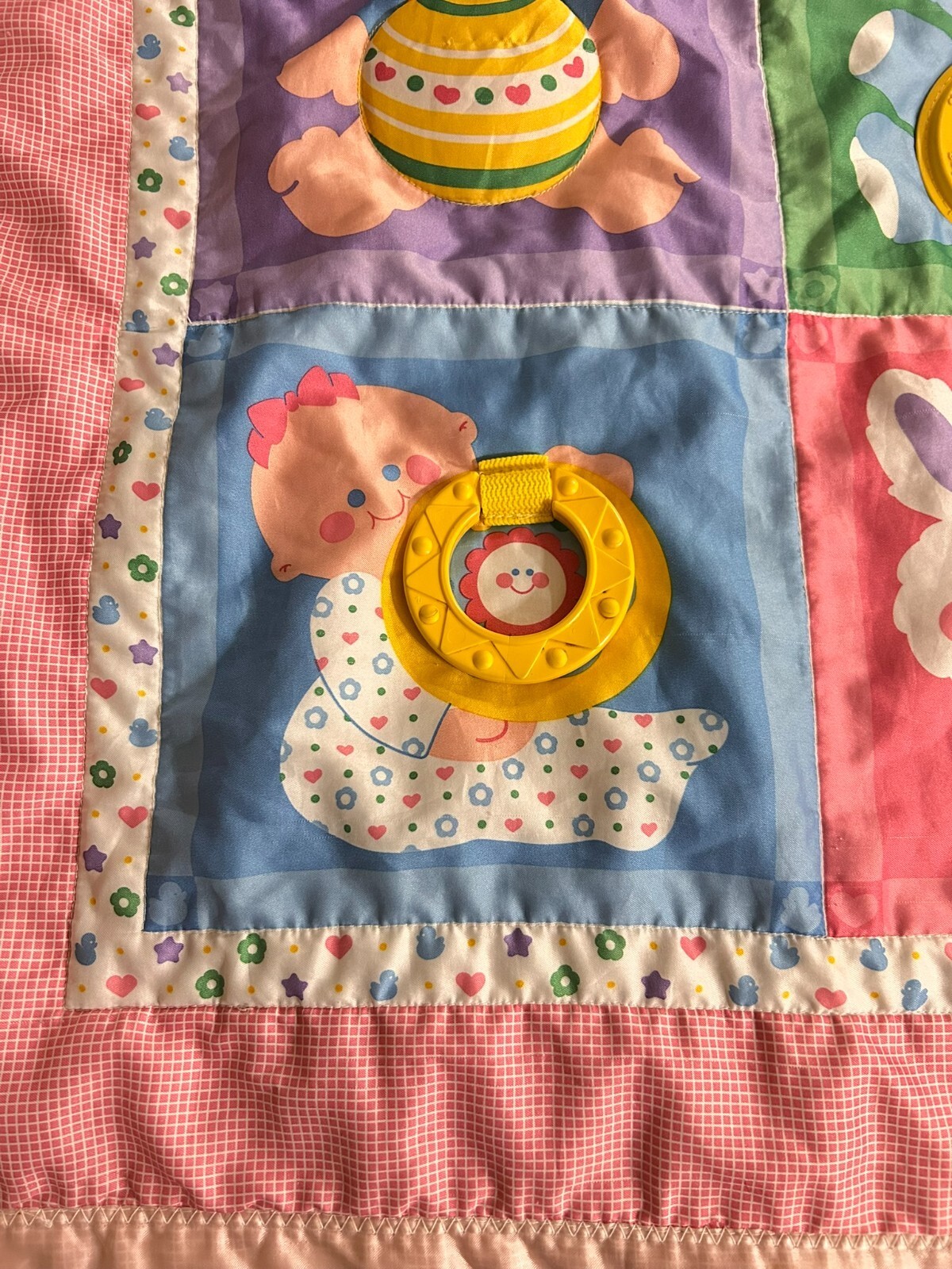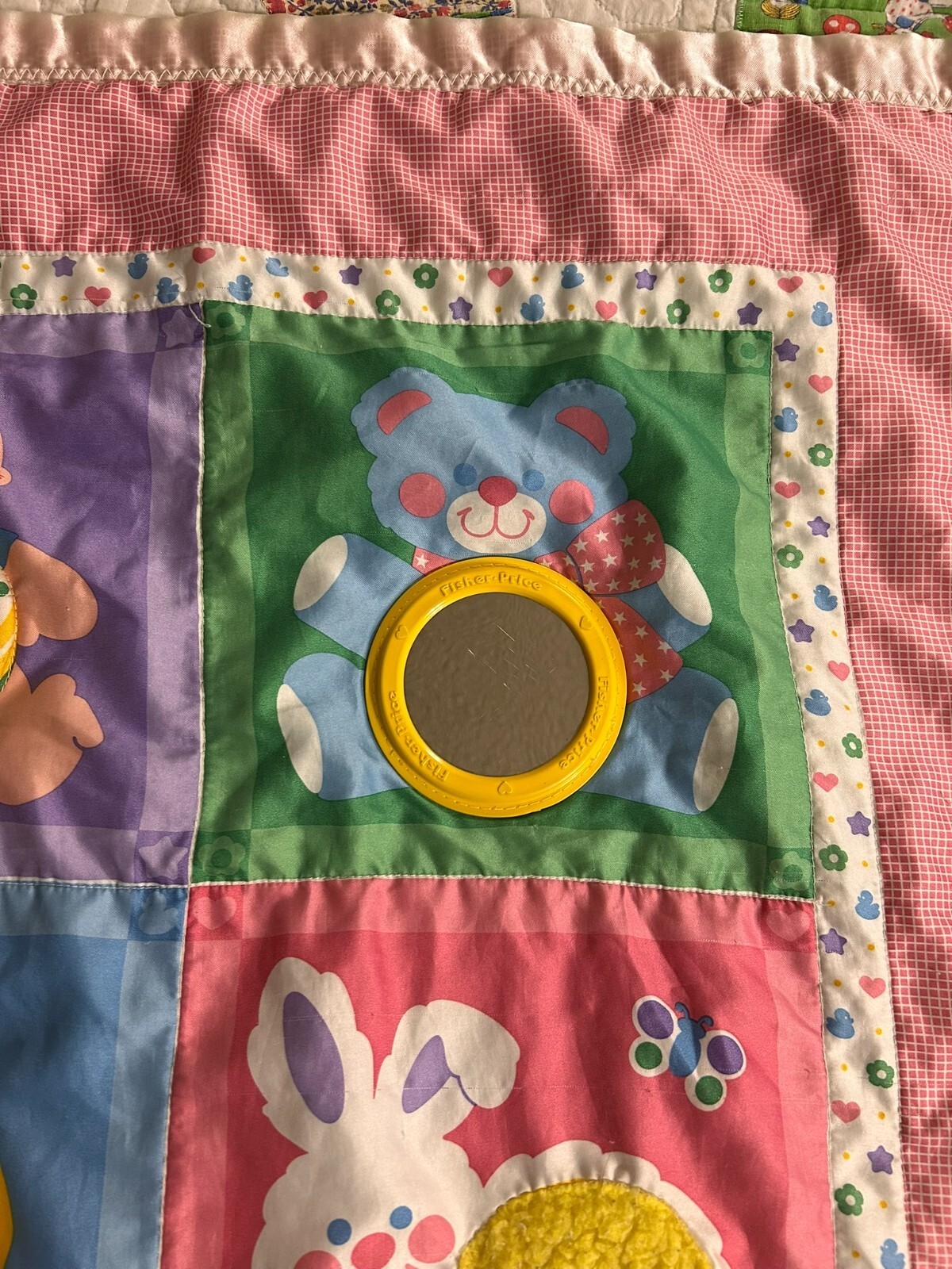 Fisher Price Vtg 1983 Baby Blanket Tummy Time Activity Mat Pink Mirror Teether