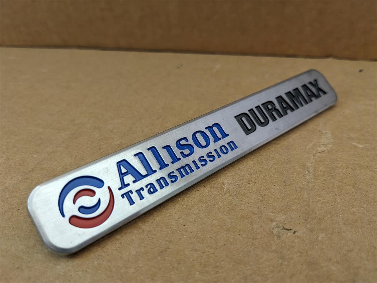 This ad is for an OEM Genuine 2007-2010 GM Chevrolet Silverado GMC Sierra Allison Transmission Duramax Front Hood Scoop Emblem