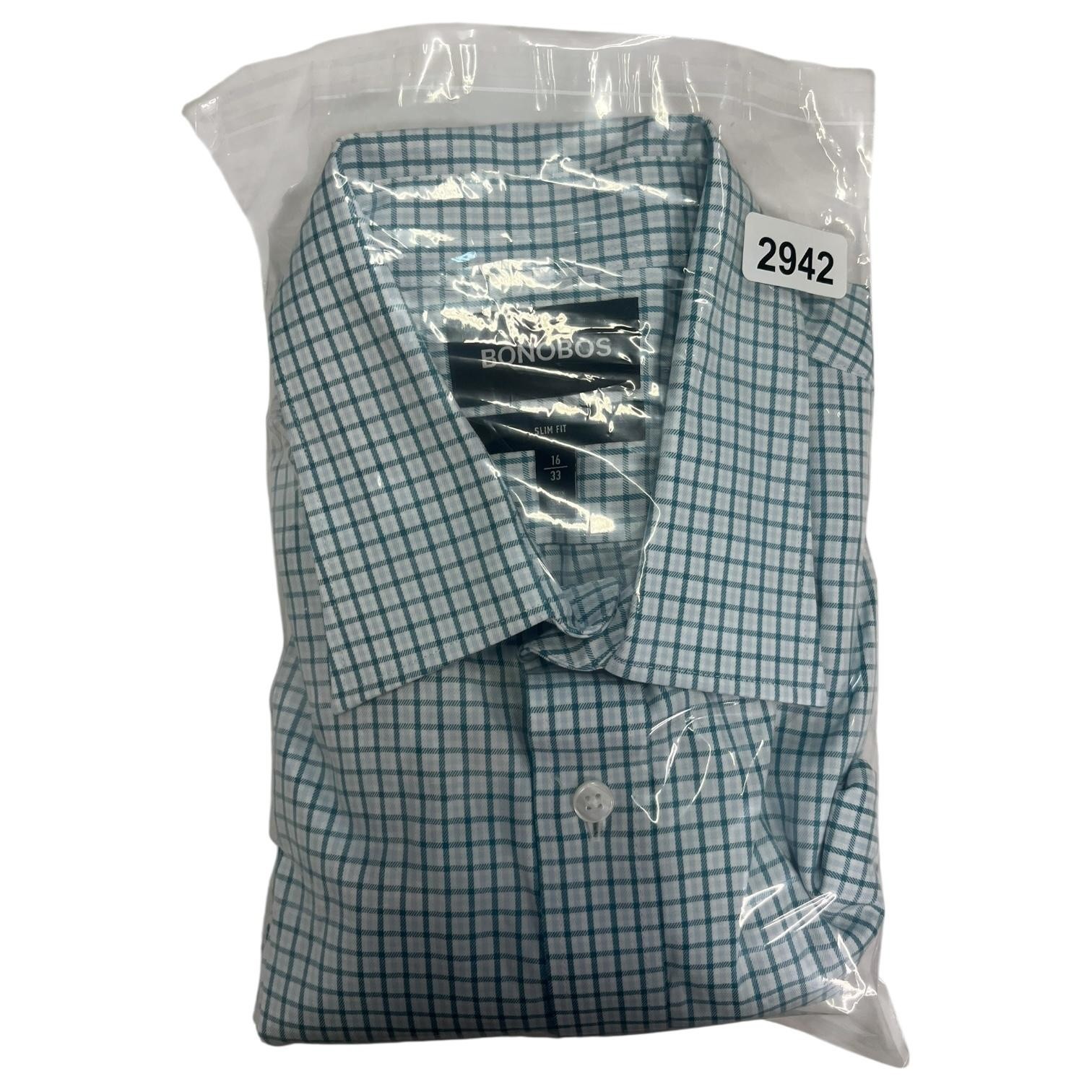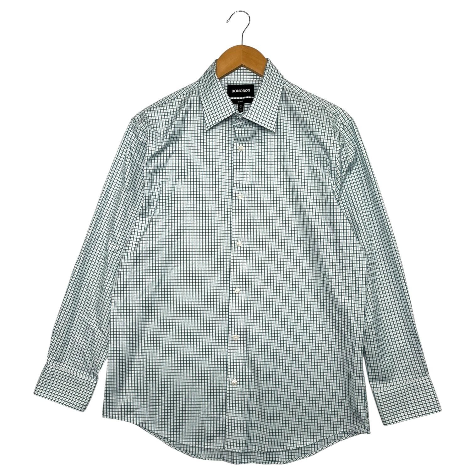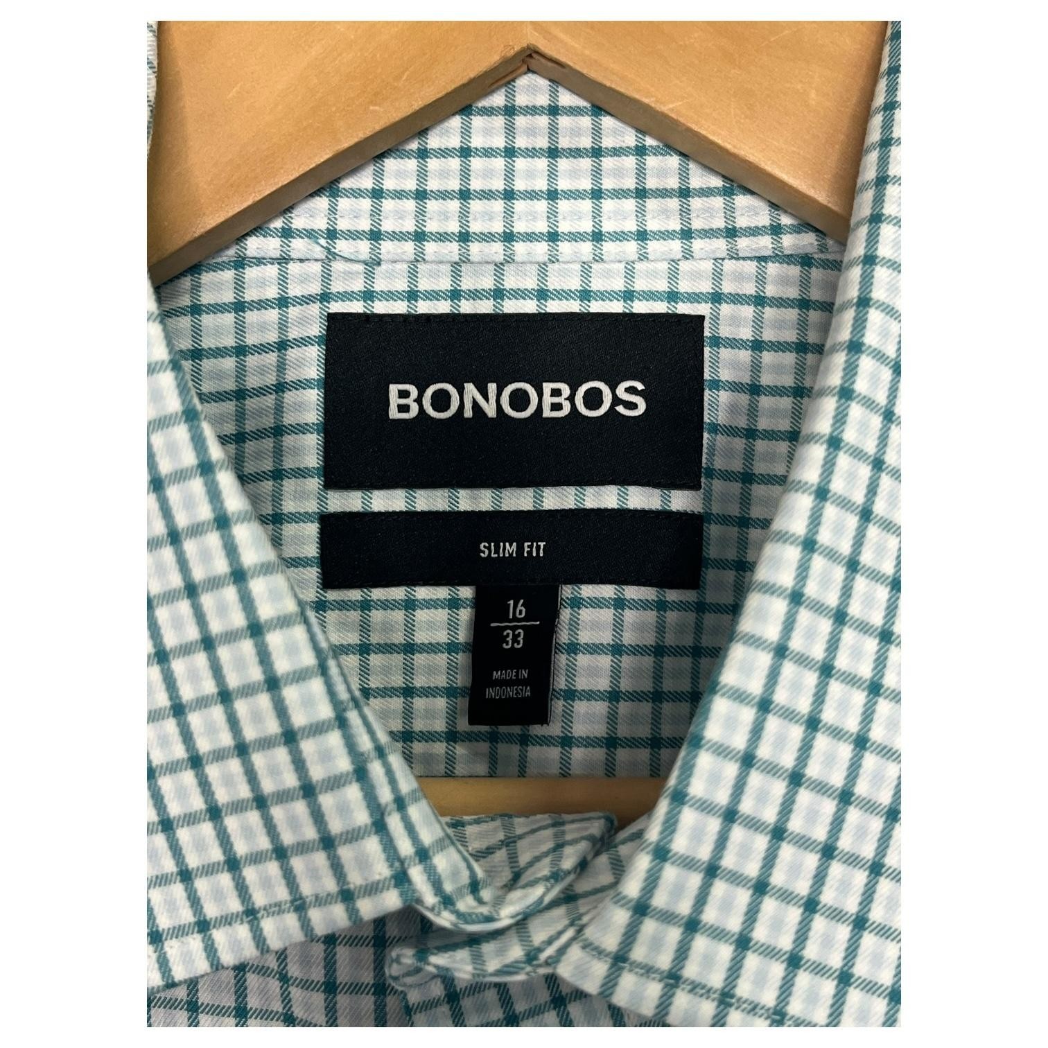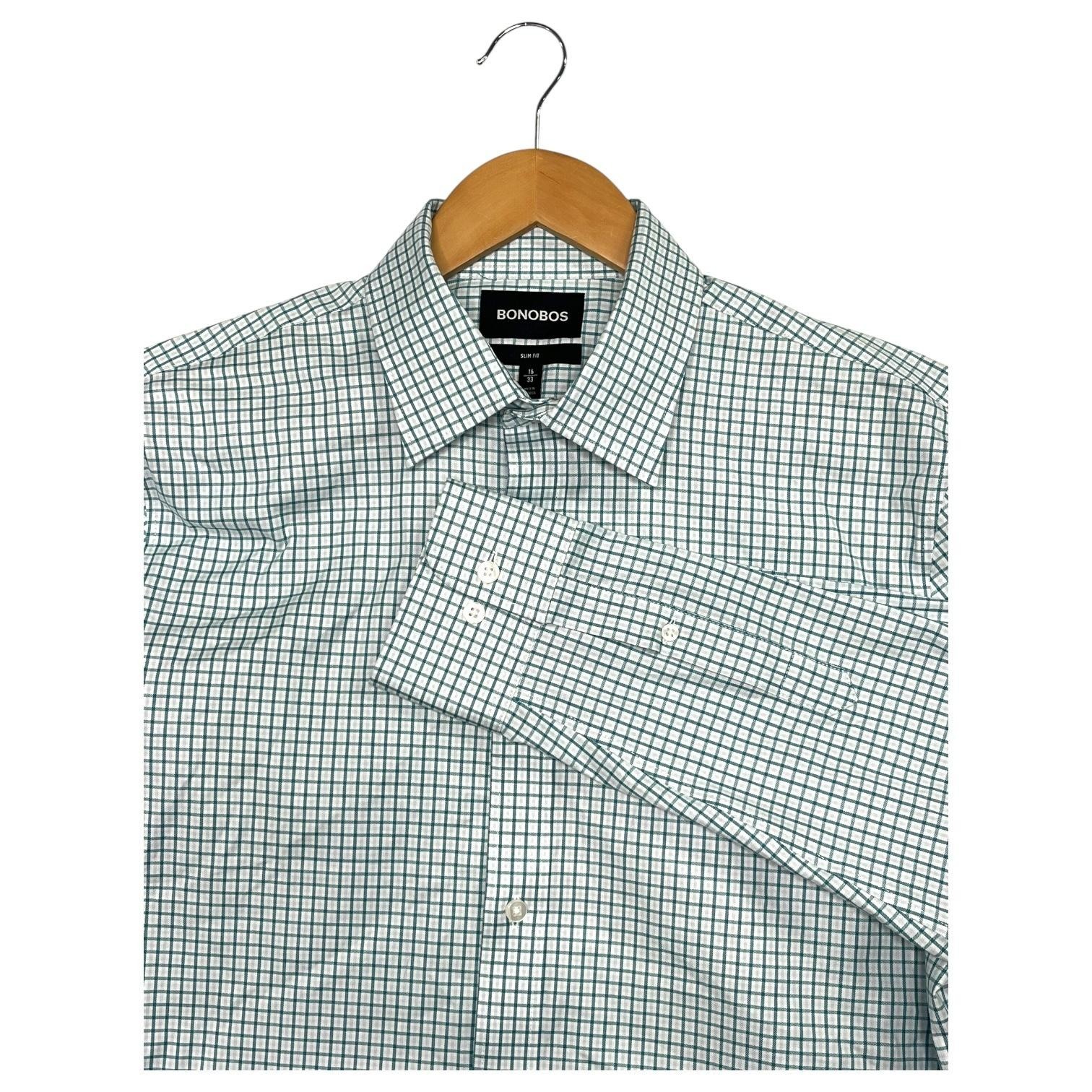Bonobos Shirt Mens 16 33 Green White Plaid Slim Fit Long Sleeve Button Down