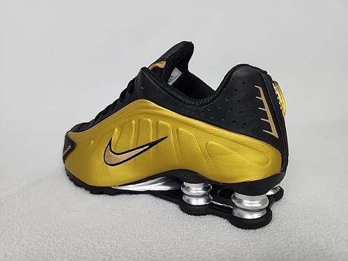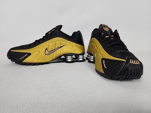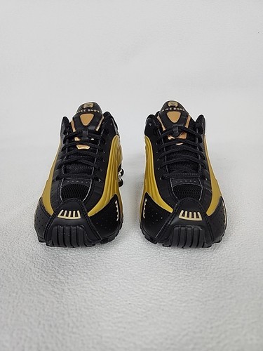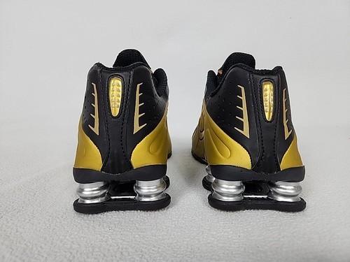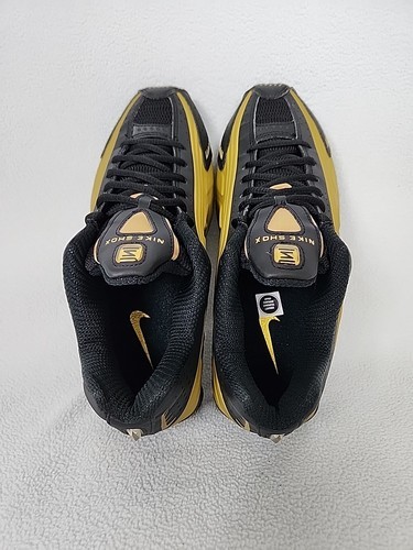 Nike Shox R4 Running Shoes Size 8.5 Womens Black Gold Metallic Silver AR3565-005