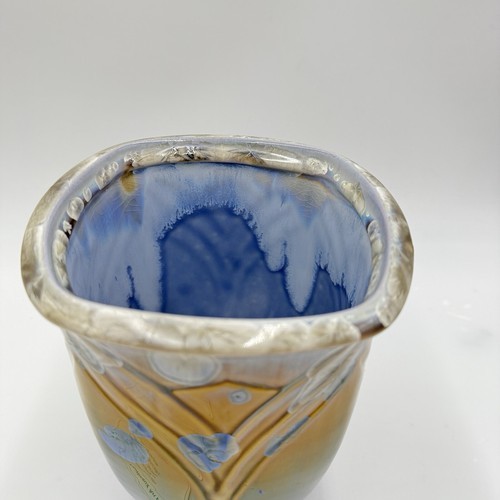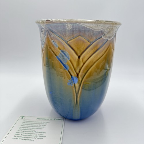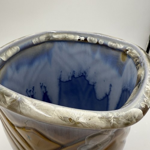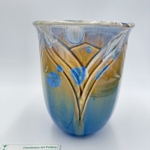 Bill Campbell Studio Art Pottery Blue Mustard Flambeaux Crystalline Vase
