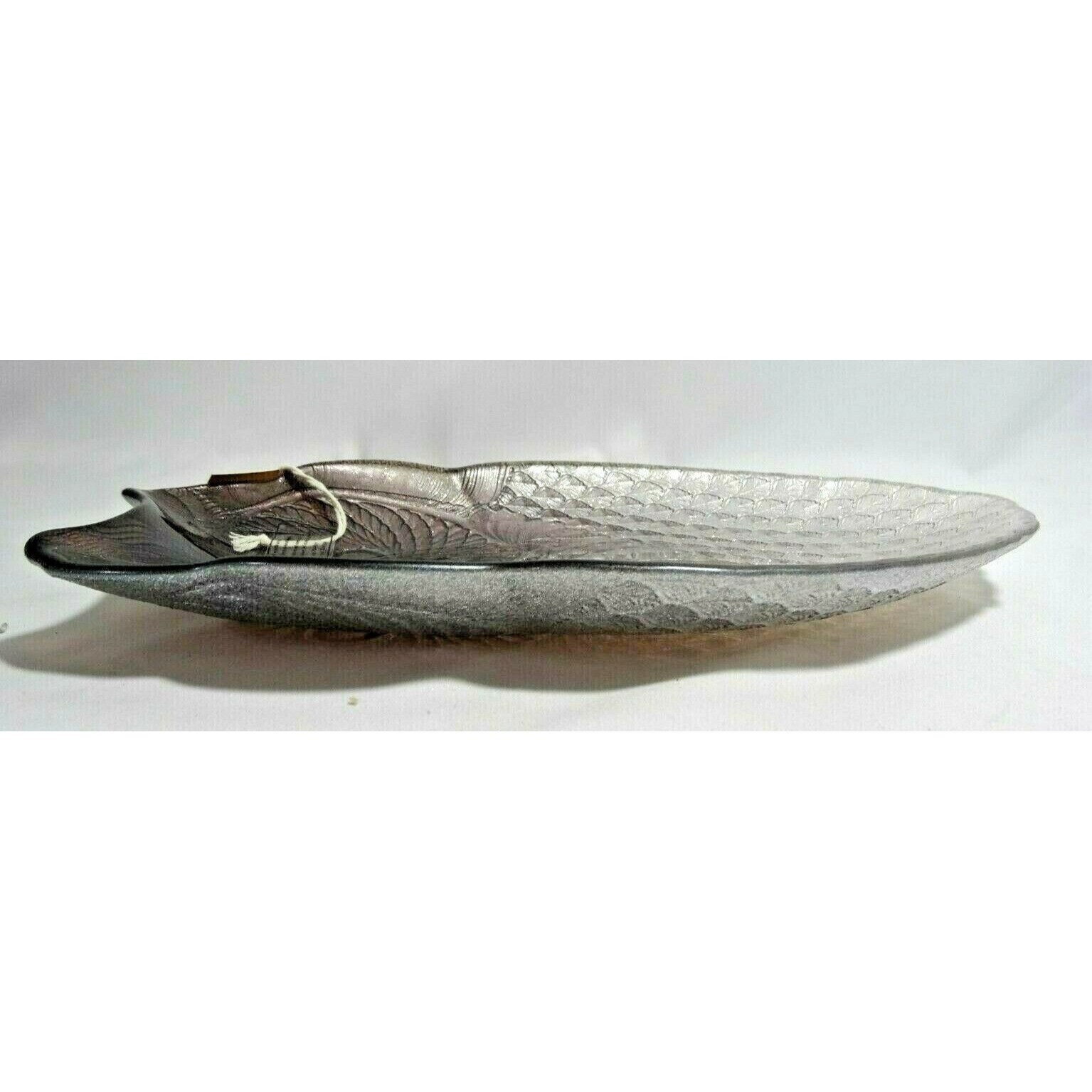 Turkish Delights Gray Owl Glass Plate Serving Bowl Dish Fade Shimmer 11 x 7-in