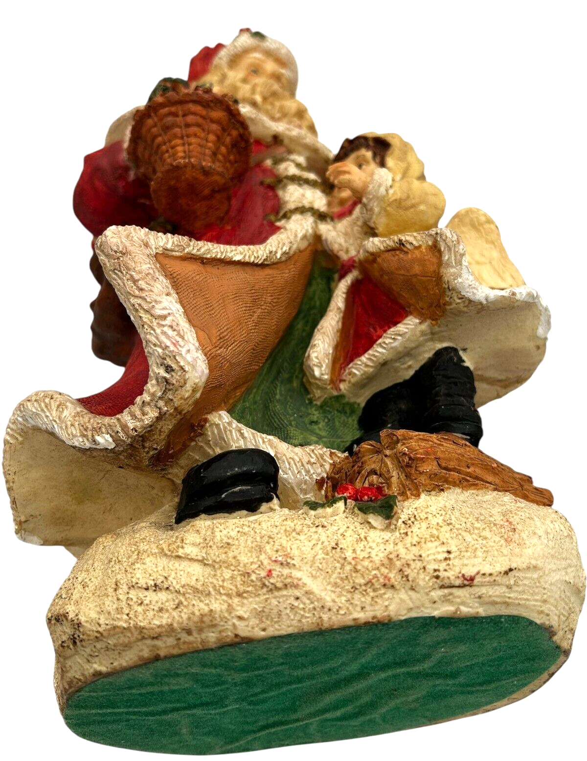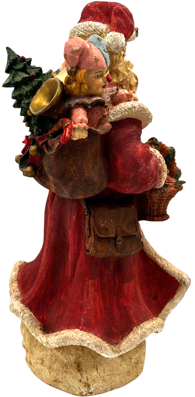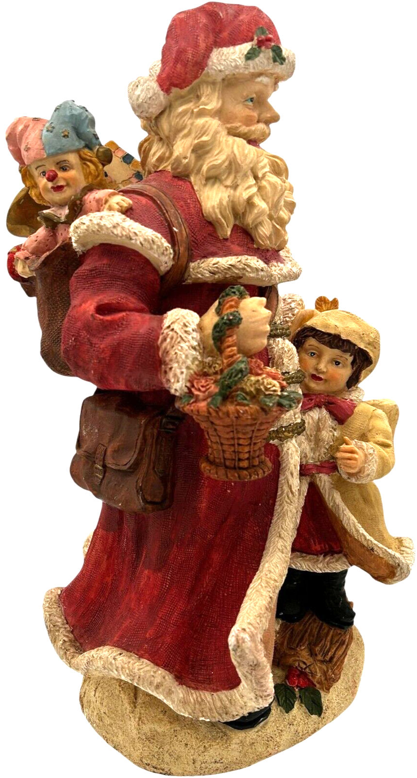 VTG St. Nicholas Santa, jacketed angel, toy bag, flowers JCPenney 15" tall resin