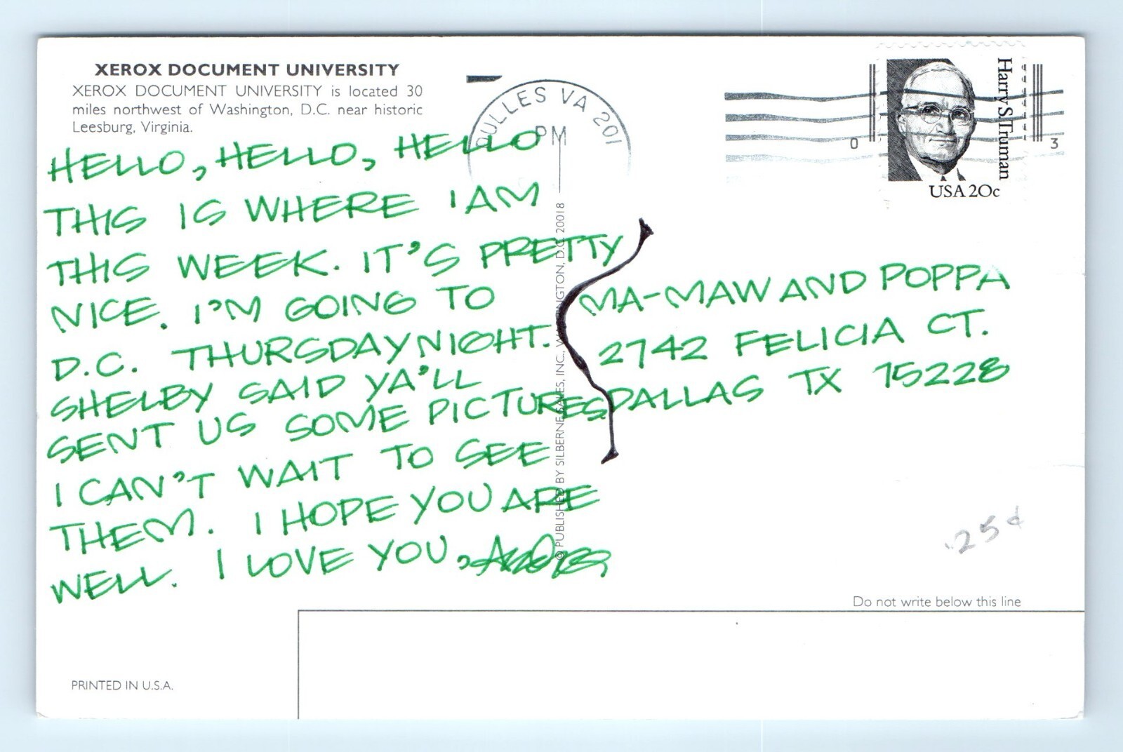 Vintage Divided Back Postcard Depicting an Aerial View of the Xerox Document University Located in Leesburg Virginia.