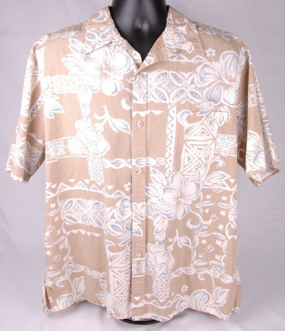 Cooke Street Hawaiian Short Sleeve Shirt-XL-Floral-Tan-Button Up-Honolulu USA