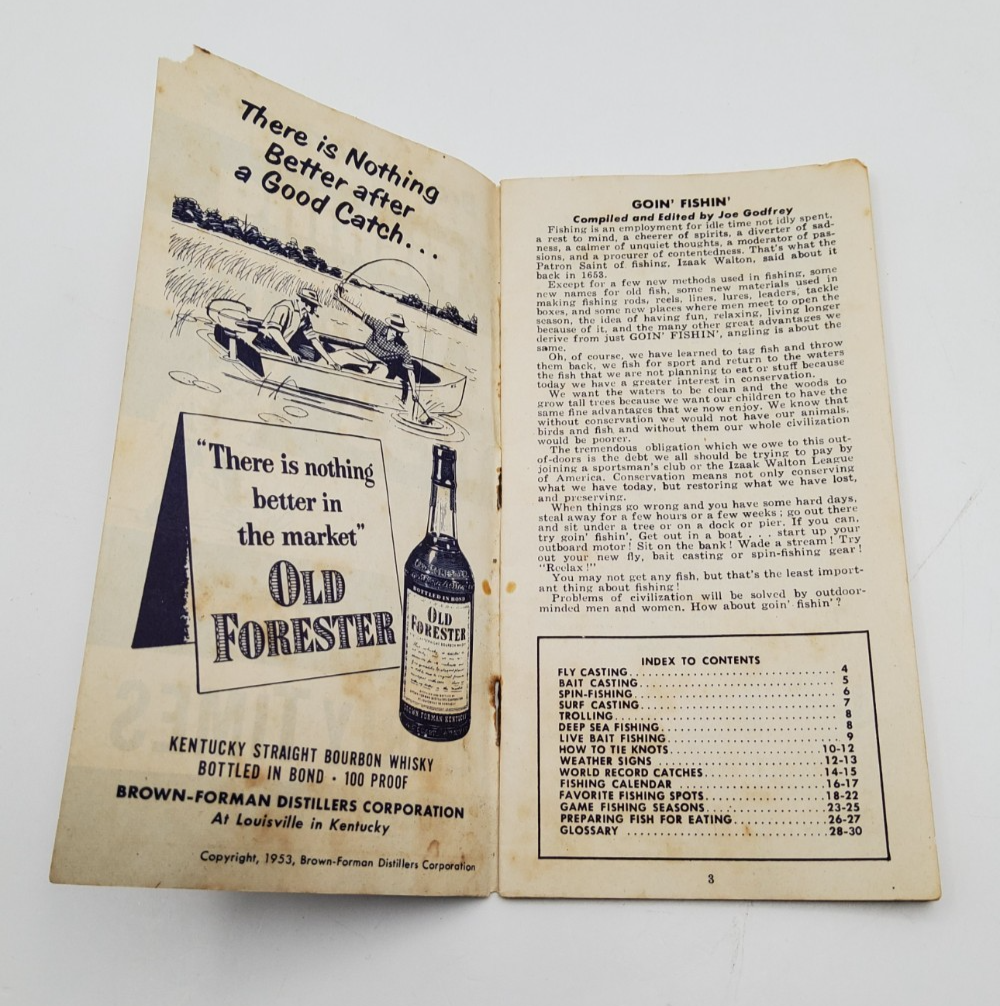 Step back in time with this 1953 Brown-Forman?s Fishing Almanac, a vintage promotional booklet distributed by the makers of Early Times and Old Forester whiskey. This collectible piece combines the charm of mid-century advertising with practical fishing tips and a full fishing calendar for the year 1953.