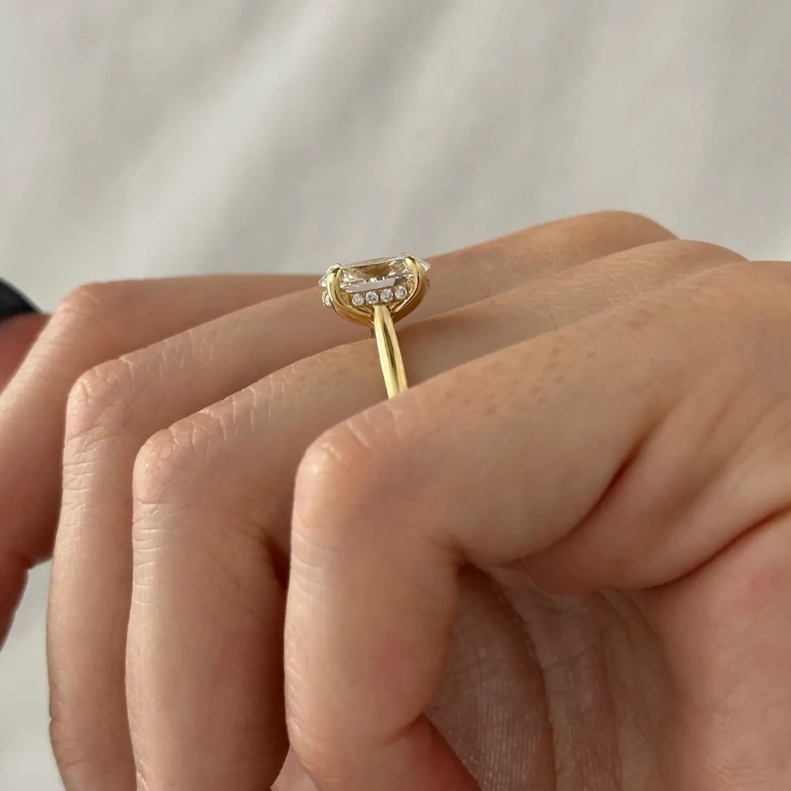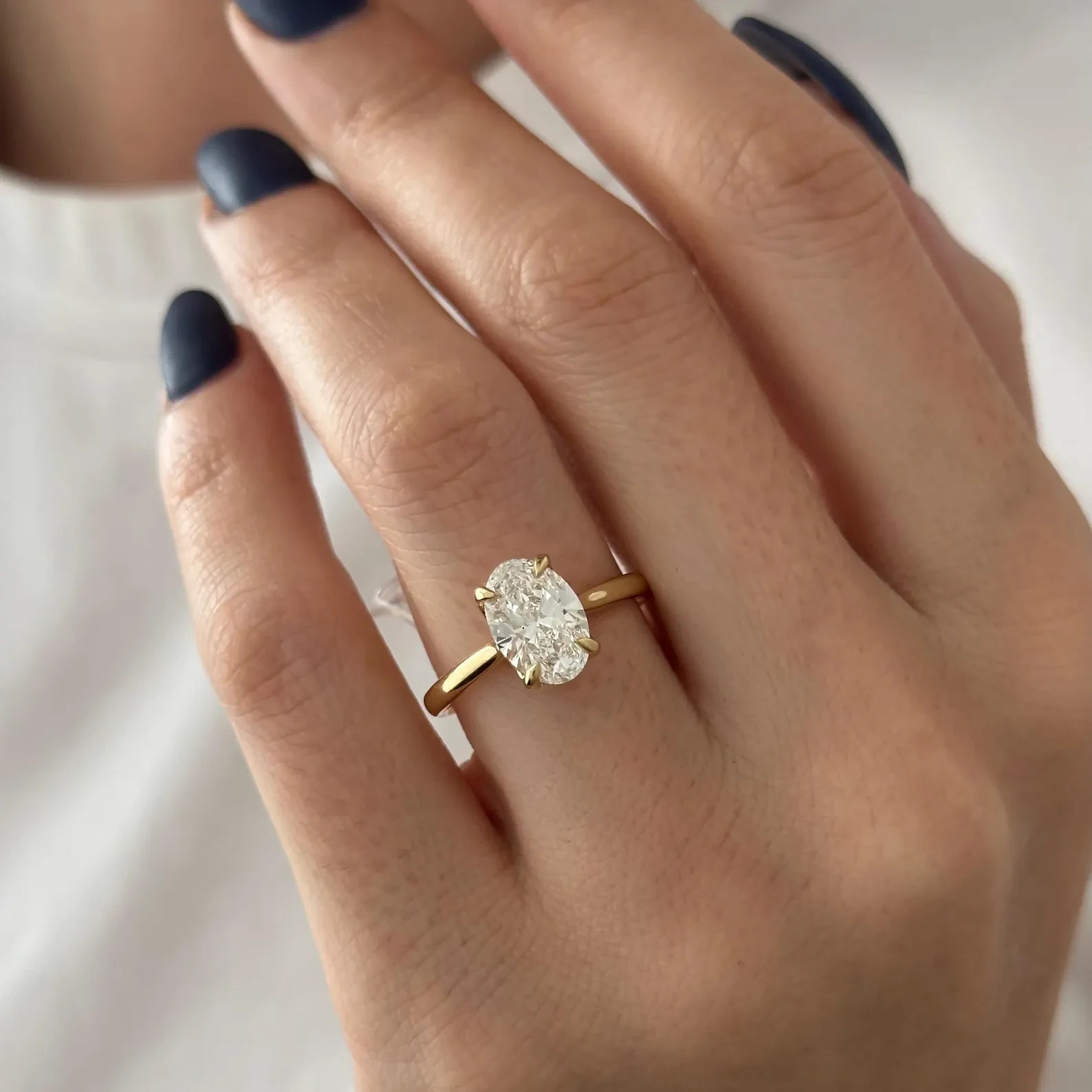 Lab Grown 2 Carat E VS1 Oval Diamonds Cathedral Lotus Set Hidden Halo Ring