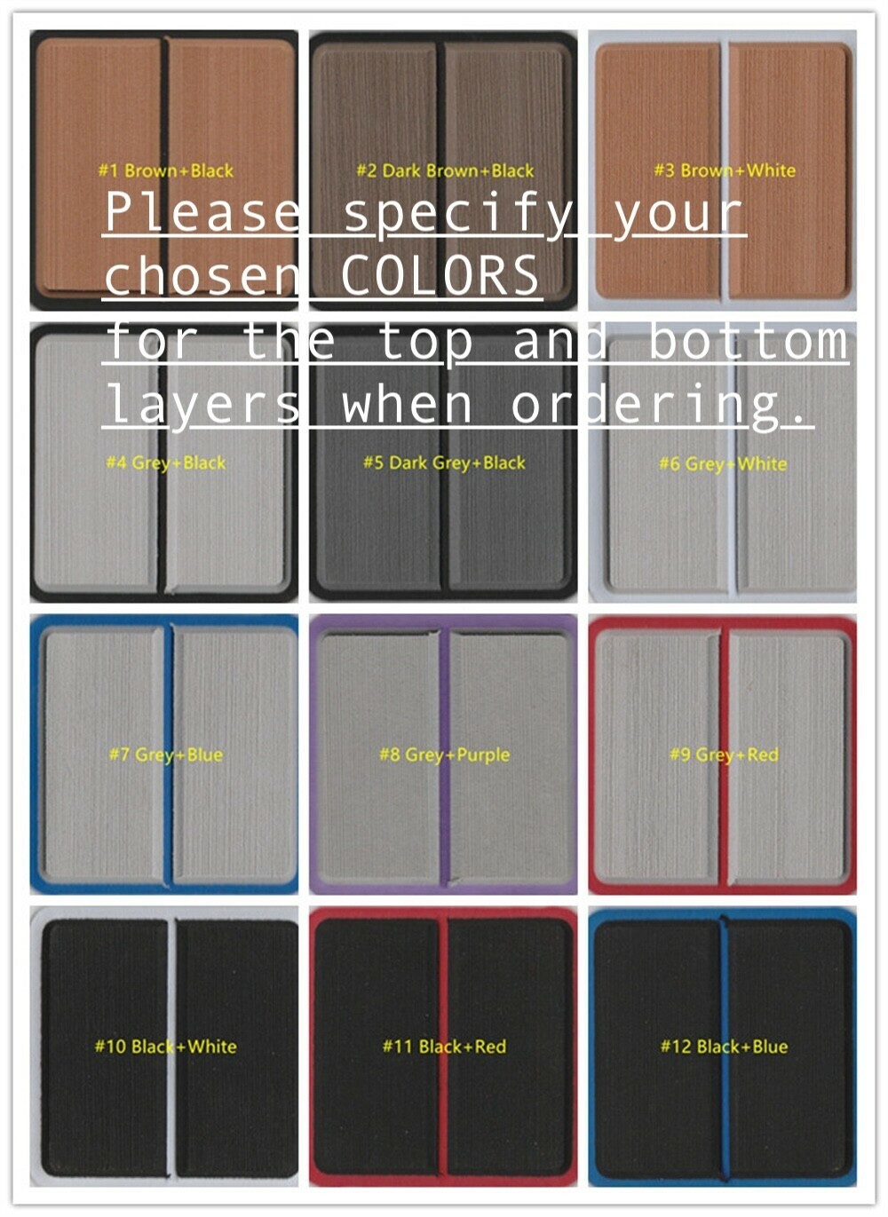 Customization: Add custom text logos for $30 per logo. Routed logos and beveled edges reveal the selected bottom color.