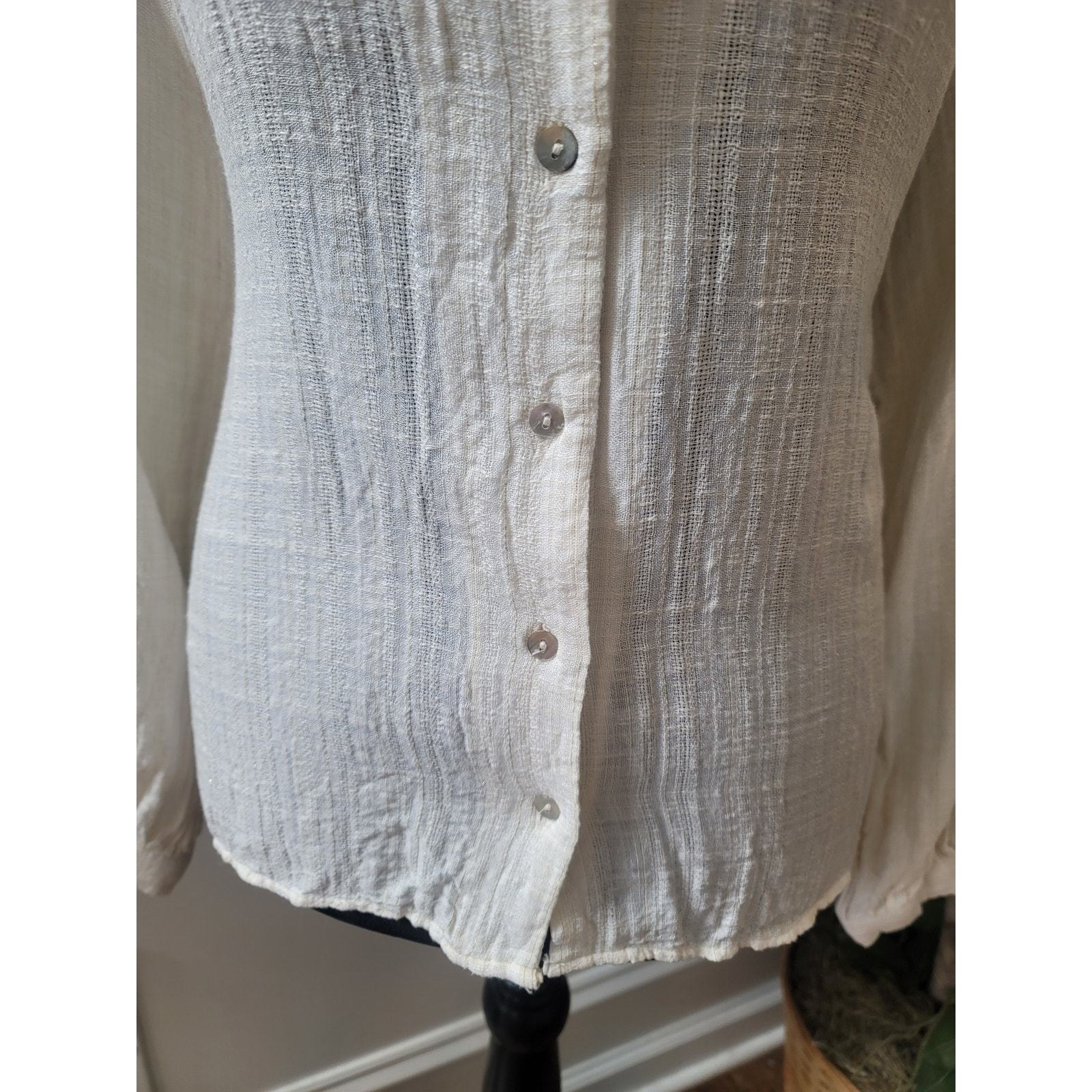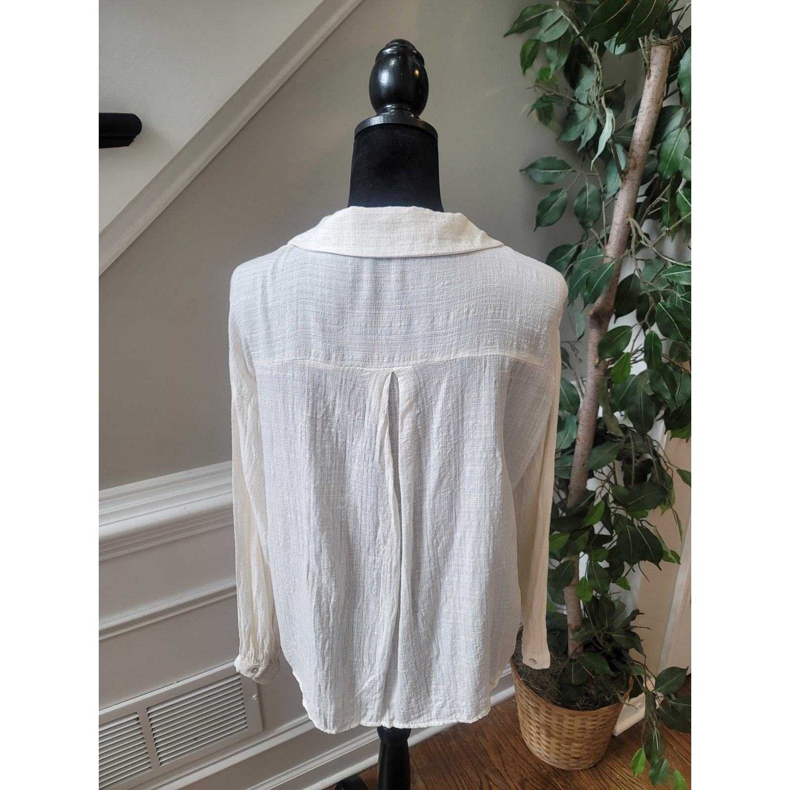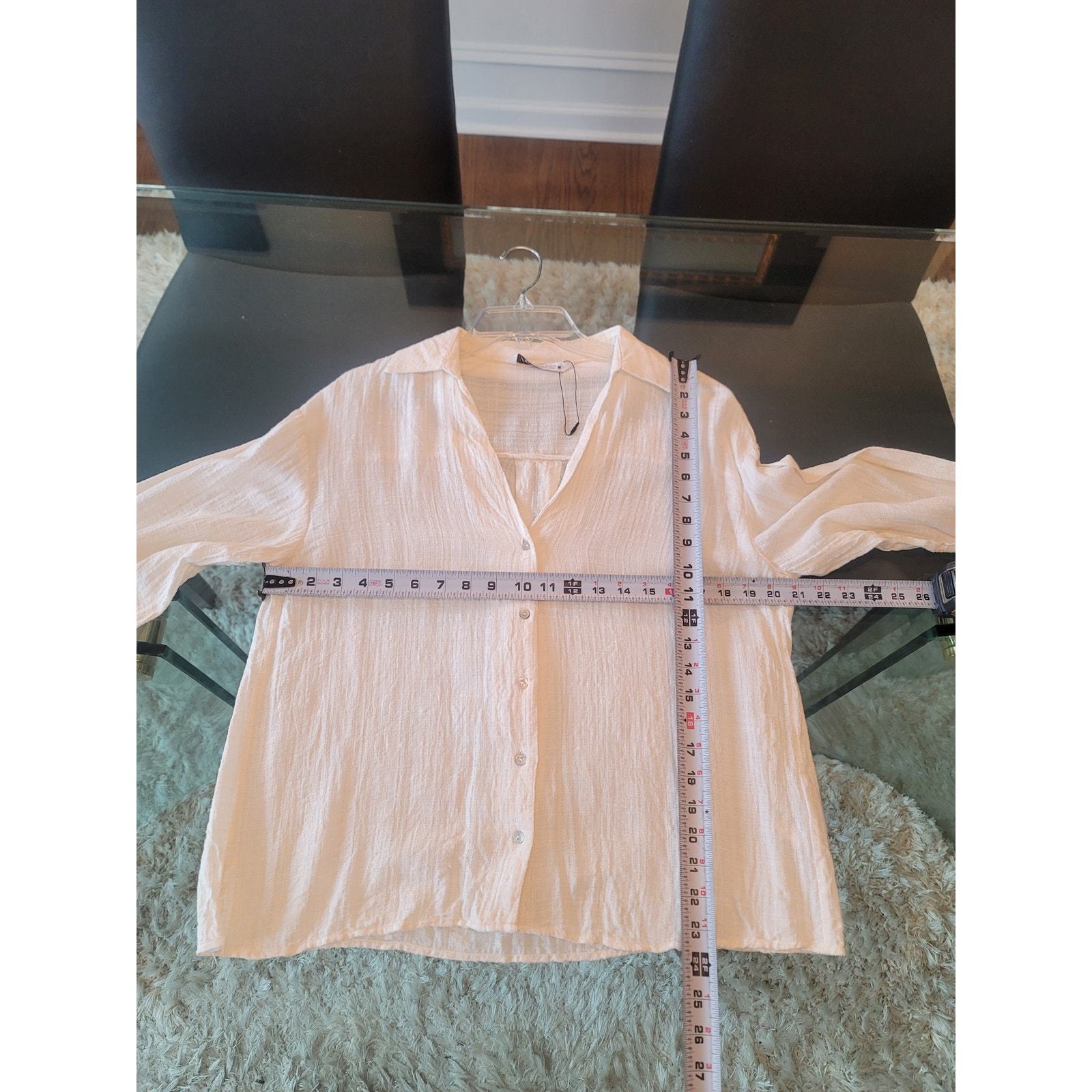 ZARA Blouse Womenโs XS White Button Down Long Sleeve Semi-Sheer Textured