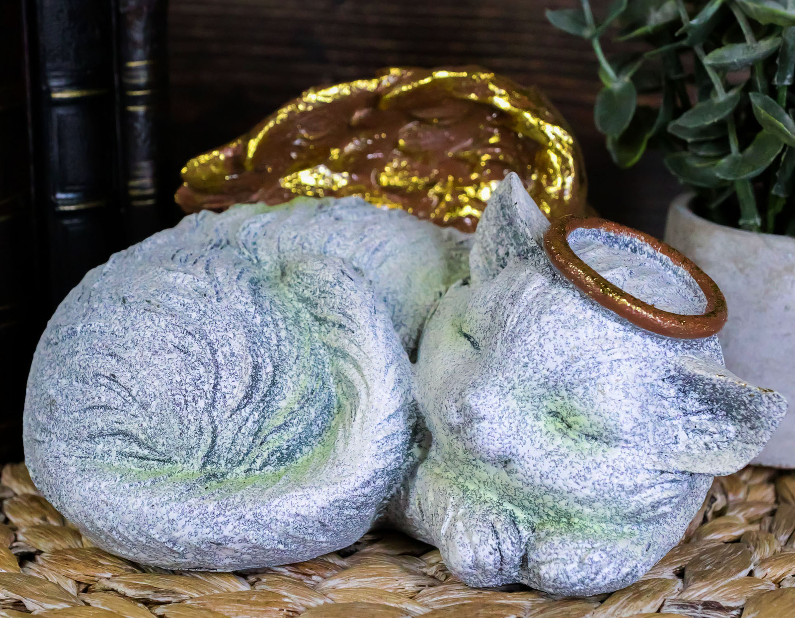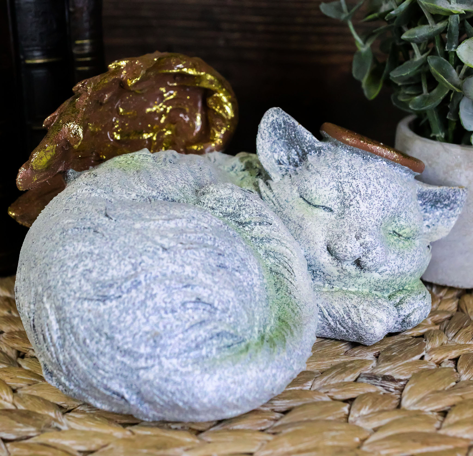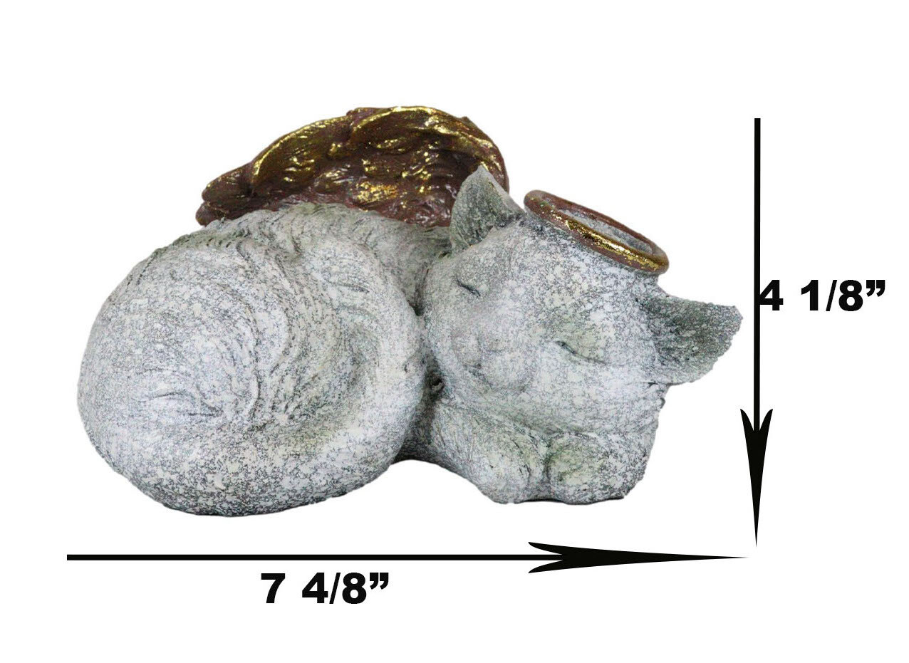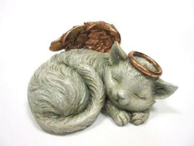 ? Cats have nine lives according to our ancestors and although that may be true, they do part ways with us after a very long time on earth. When they do, we are reminded that they are all angels sent by God to us. This sculpture features a peaceful sleeping cat with angelic wings and a halo on its head.
