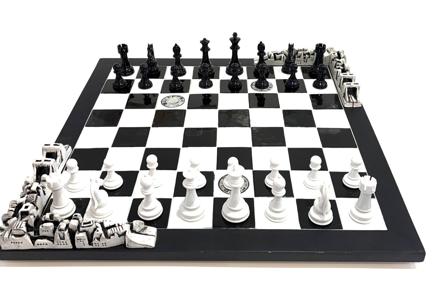 CHARLES FAZZINO ORIGINAL CHESS BOARD HAND SIGNED AND DATED ON BOTTOM