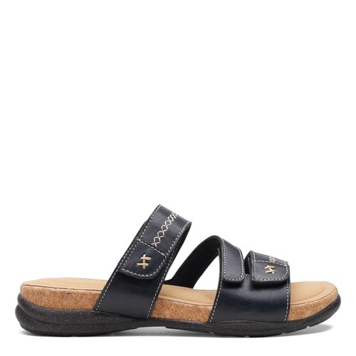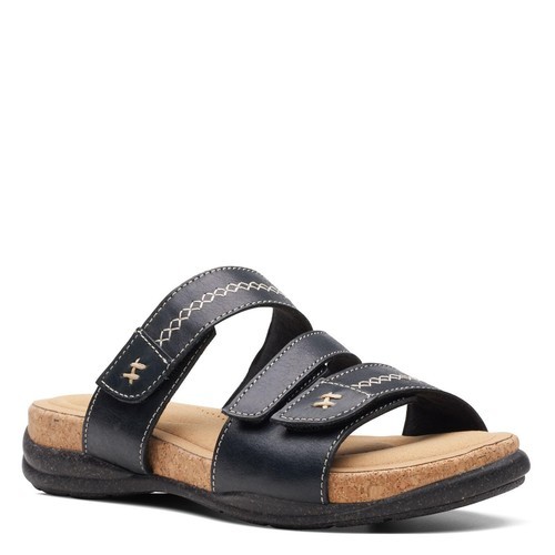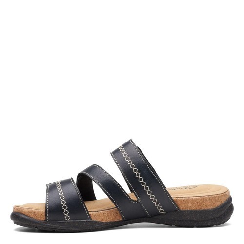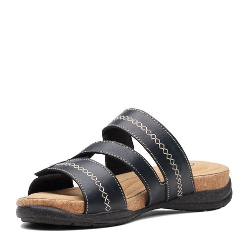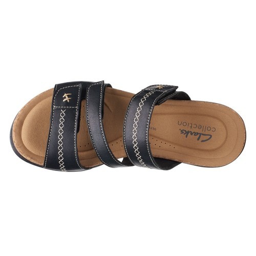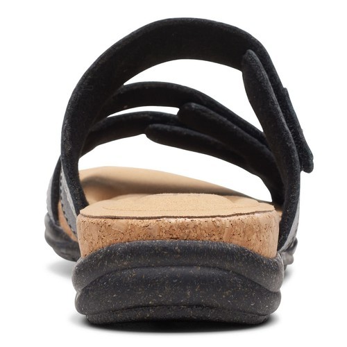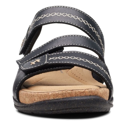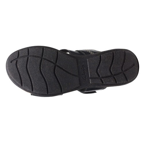 Clarks Women's Roseville Bay Flat Sandal Black Leather 65248