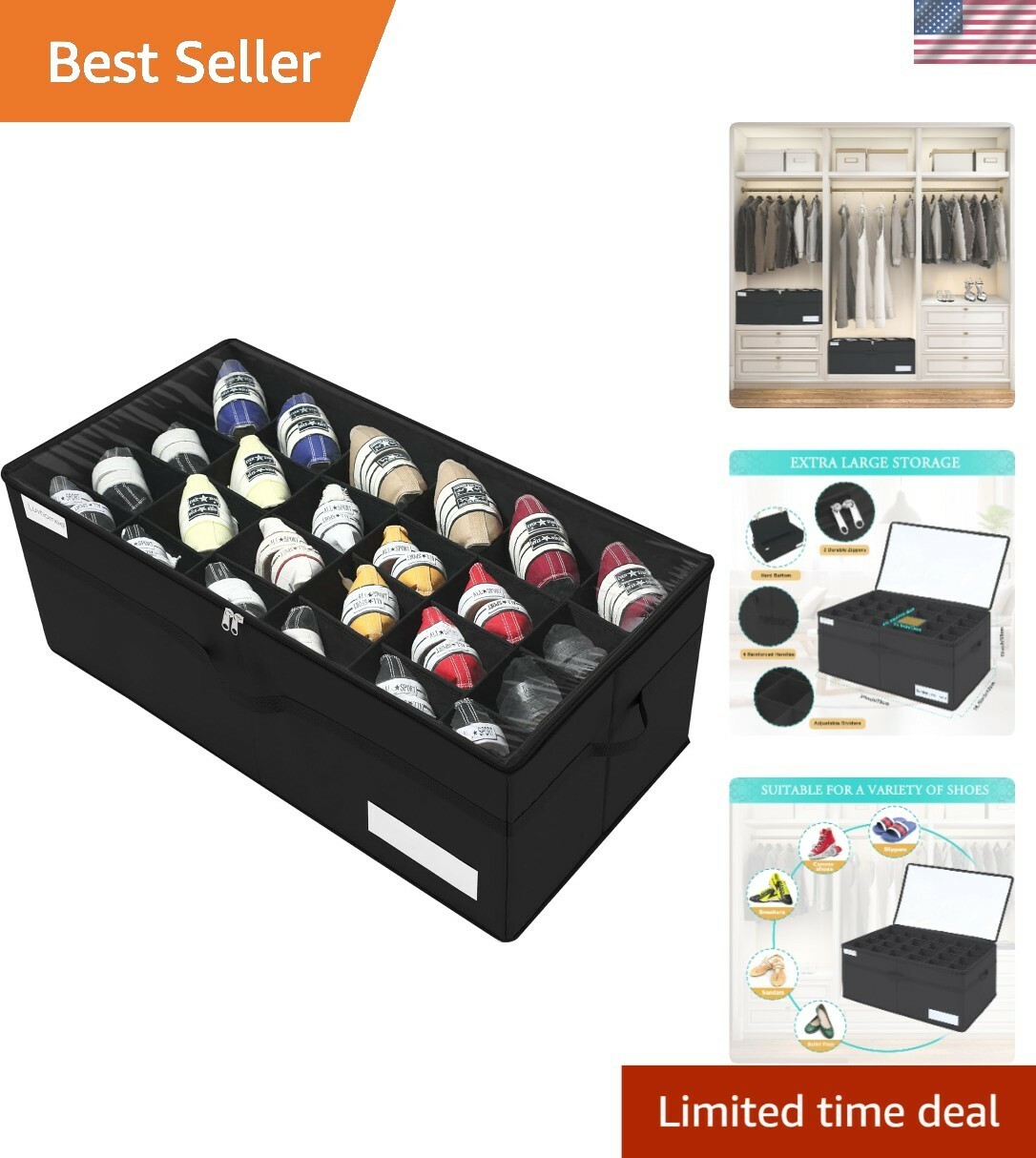 Elegant Shoe Storage Organizer for 24 Pairs - Clear Foldable Box with Support