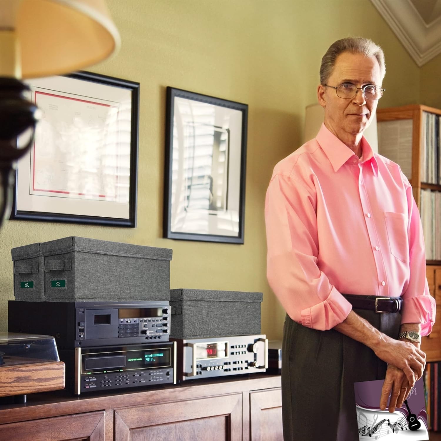 Practical CD Organizer Box Set – Waterproof, Holds 386 Discs, Grey Fabric Design