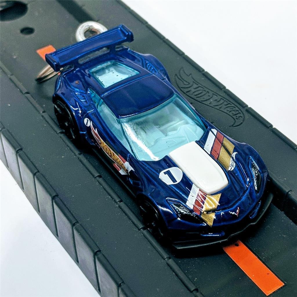 Hot Wheels HW Race Team 8/10 Blue Corvette C7 R C7R 1:64 Diecast Keychain Gift