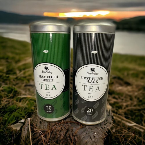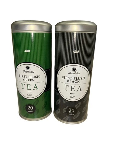 2 Shan Valley First Flush Tea Cans.( 1 Black Can and 1 Green Can)