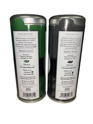 2 Cans Shan Valley First Flush Black and Green Tea - 20 Tea Bags per Tin Can