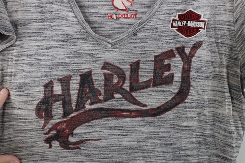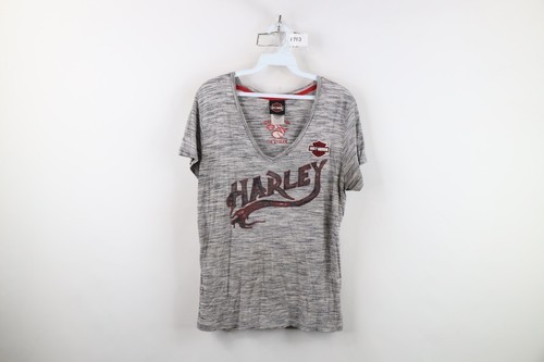 Vintage Y2K Harley Davidson Womens XL Distressed Jersey Knit V-Neck T-Shirt