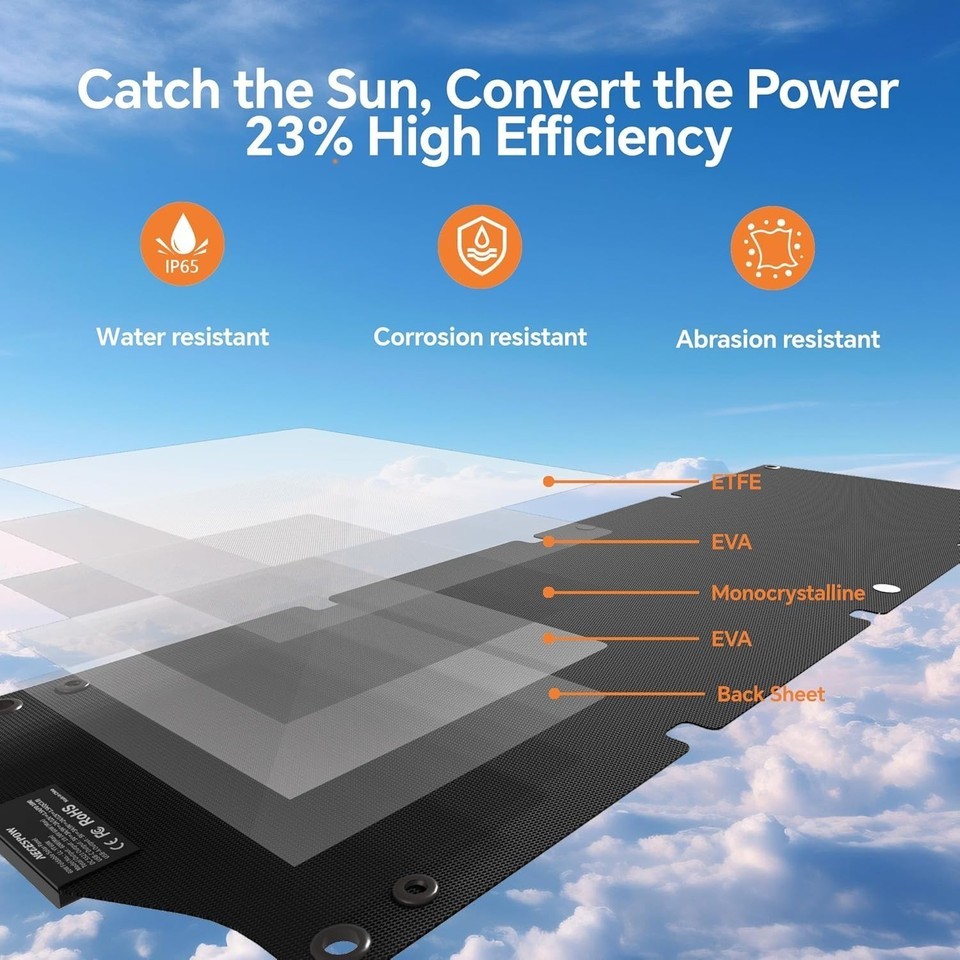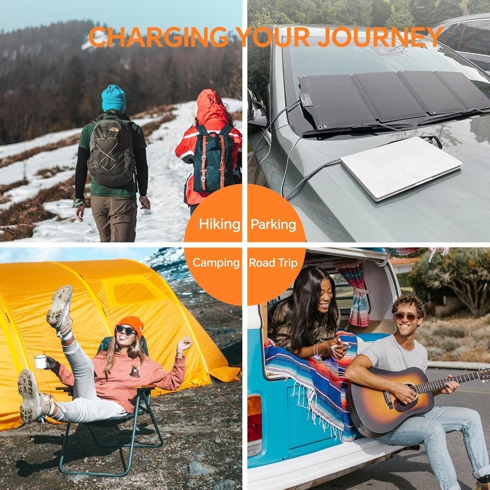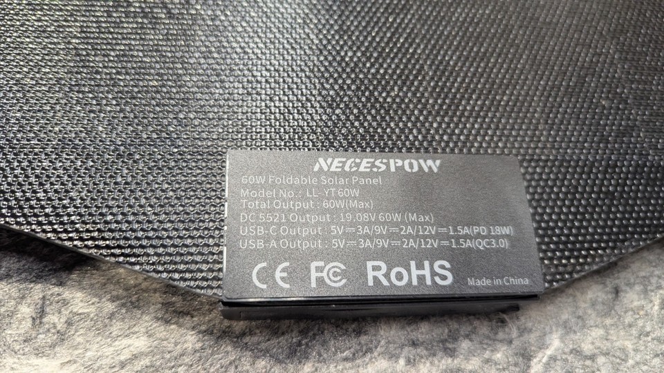 New NECESPOW 60W Portable Solar Panel Charger with USB-A, USB-C, DC5521 Ports