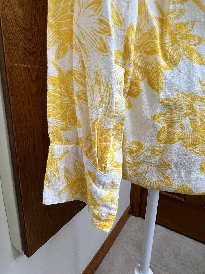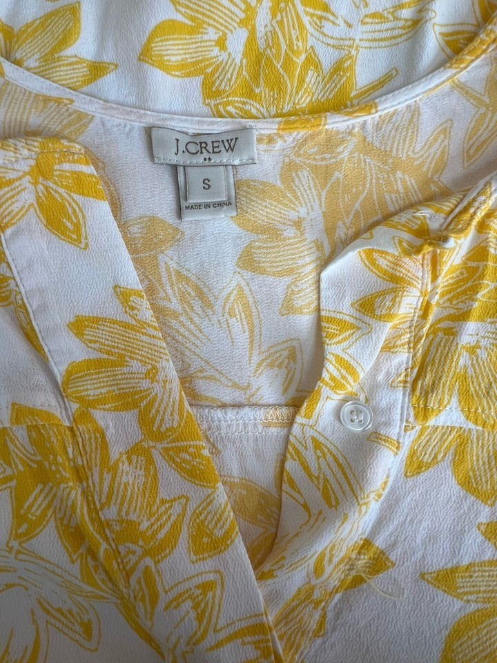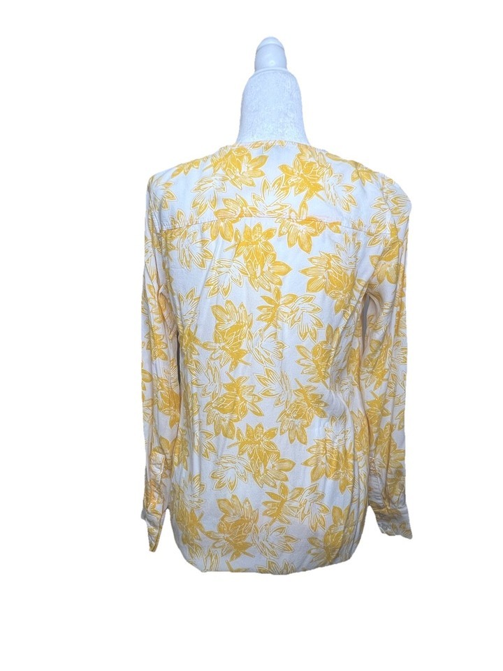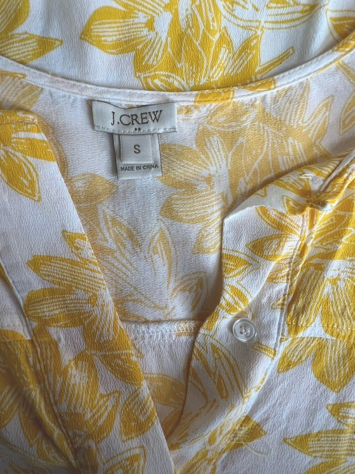 J Crew Womens Yellow White Floral Print Long Sleeve Blouse Sz S Lightweight NOTE