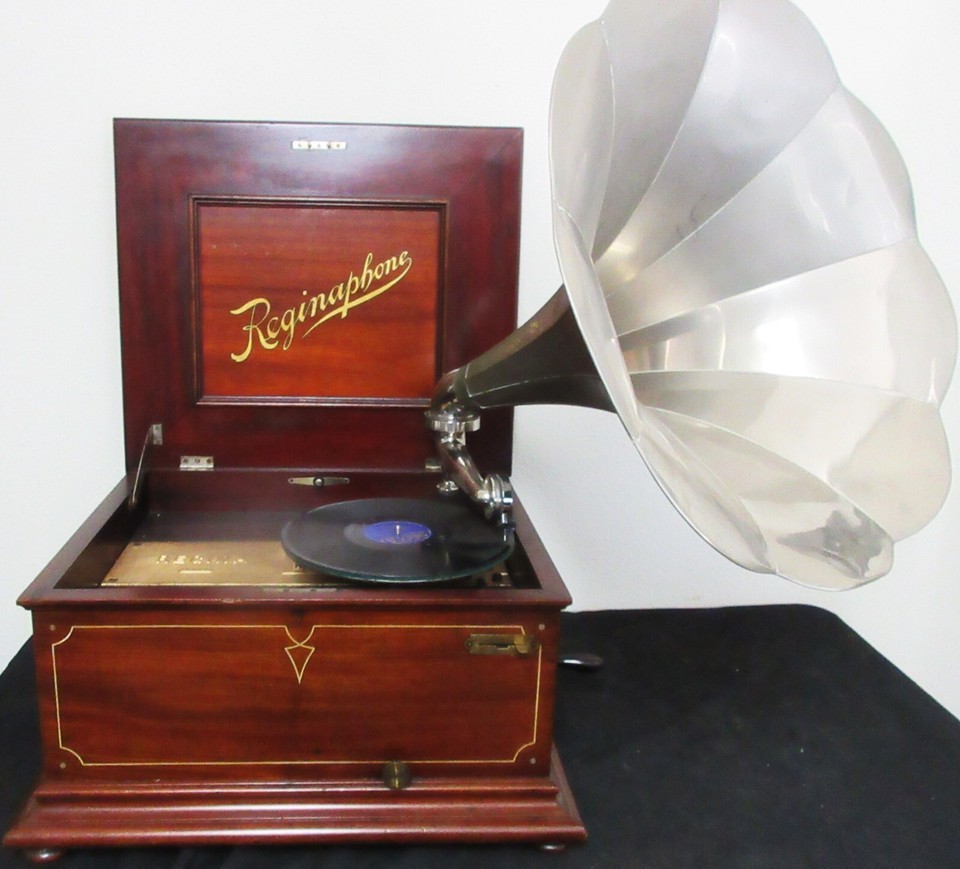 Reginaphone was a hybrid machine that played both music box discs and phonographs. Regina used a phonograph mechanism manufactured by the American Graphophone Company, which evolved into Columbia Records.