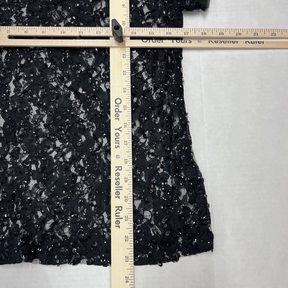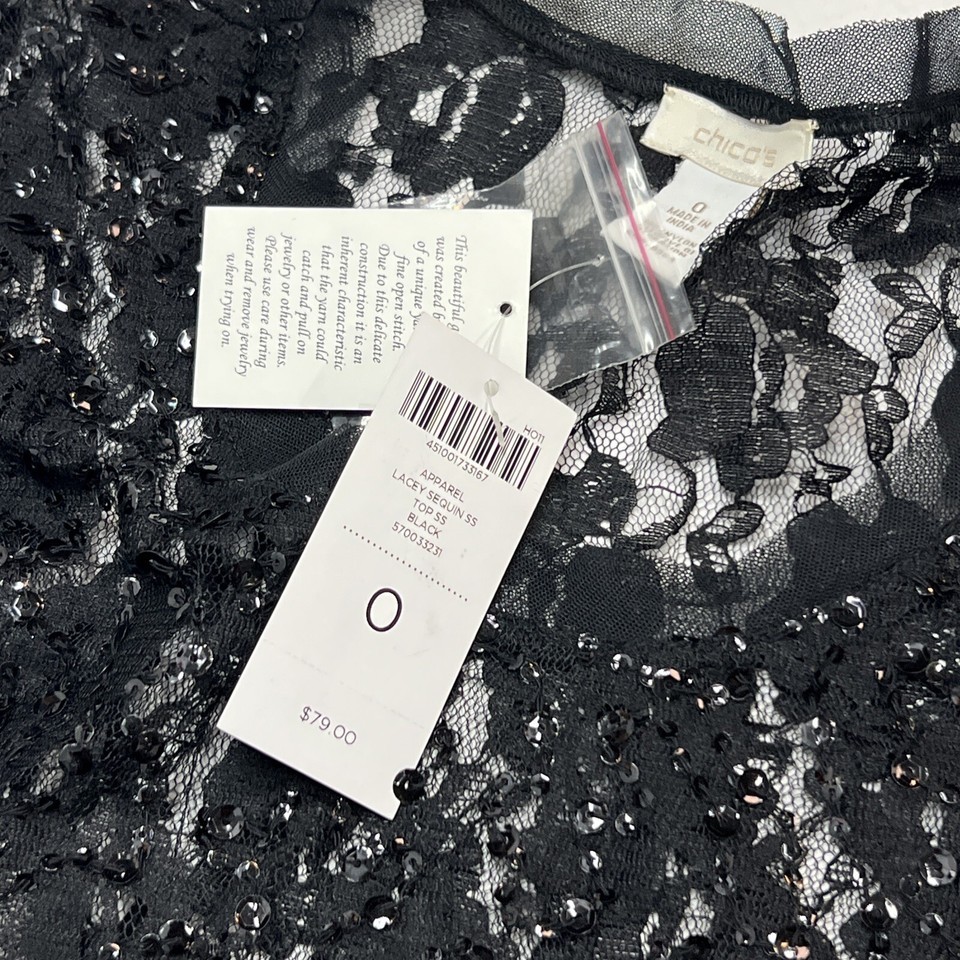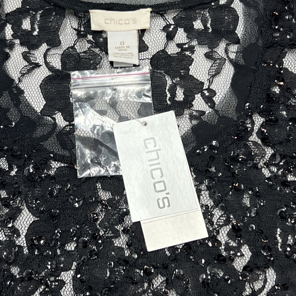 Chicos Top Womens 0 XS Black Lace Sheer Sequin Mesh Trim Witchy Whimsigoth Fairy