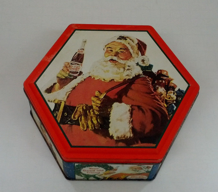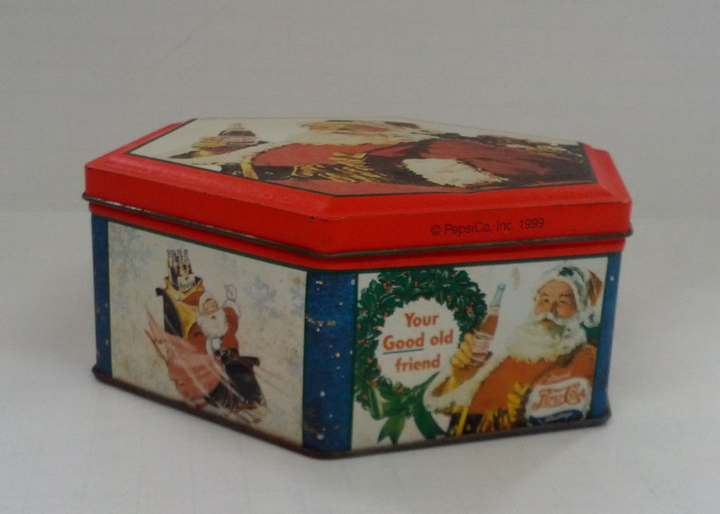 1999 Pepsi cola Christmas santa collectible metal tin container cookie sewing