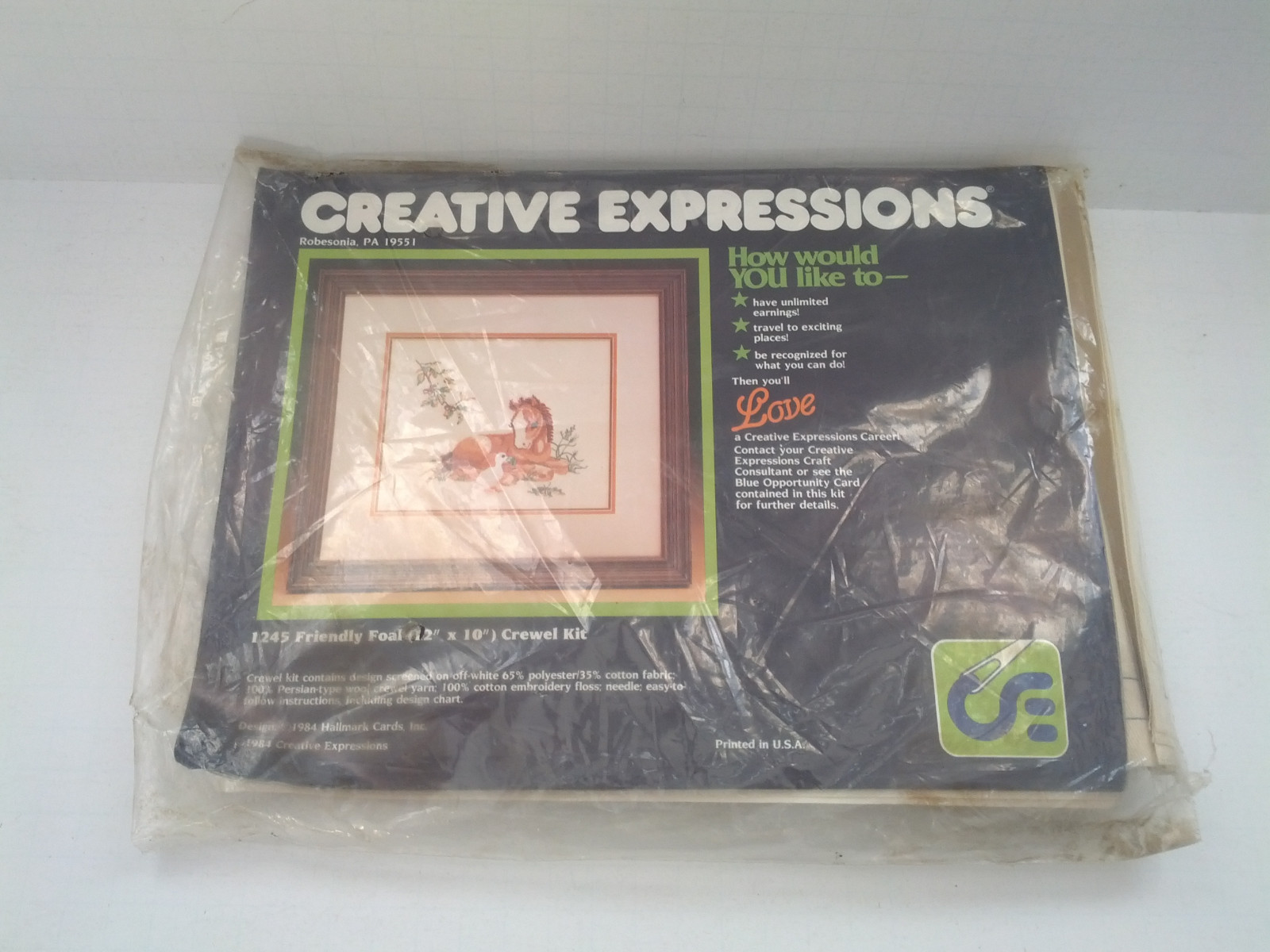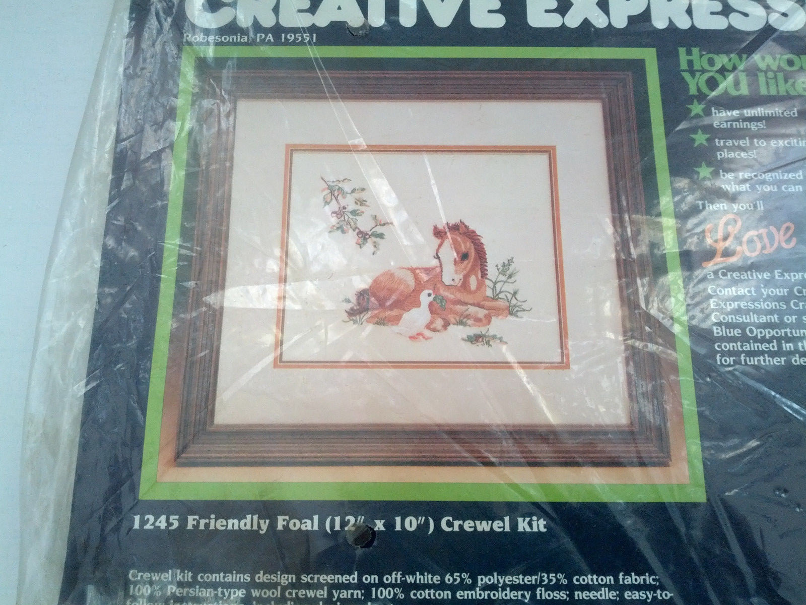 Vintage 1984 crewel kit friendly foal picture creative expressions brand NOS