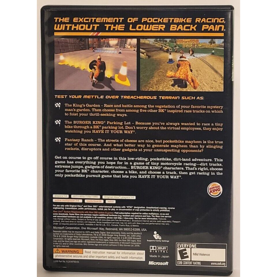 Pocketbike Racer disc contains two complete versions of the game: one for play on the original Xbox console and the other for play on Xbox 360. Pocketbike Racer was developed by Blitz Games, a studio known for its work with licensed properties in games such as Taz: Wanted, CUBIX: Race 'N Robots, and Pac-Man World 3.
