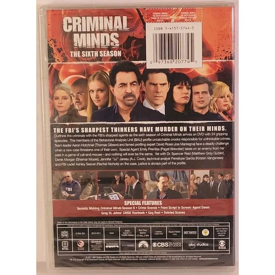 Criminal Minds: Season 6 DVD 6-Disc Set 2011 Region 1 SEALED