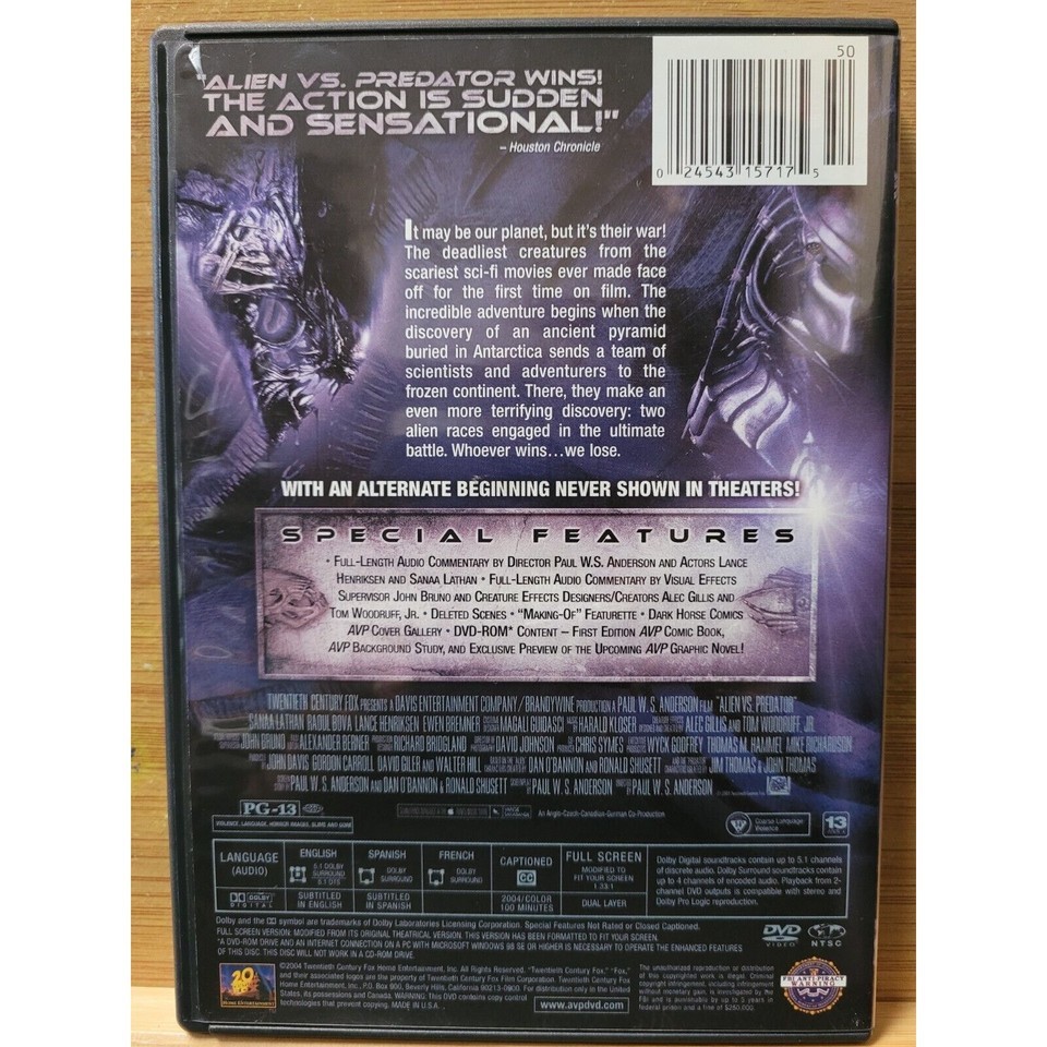AVP Alien Vs. Predator DVD Full Screen Edition 2004 Region 1