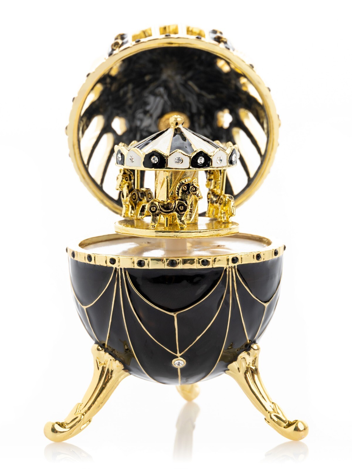 Keren Kopal black Music egg Horse Carousel Trinket box Decorated with Crystals