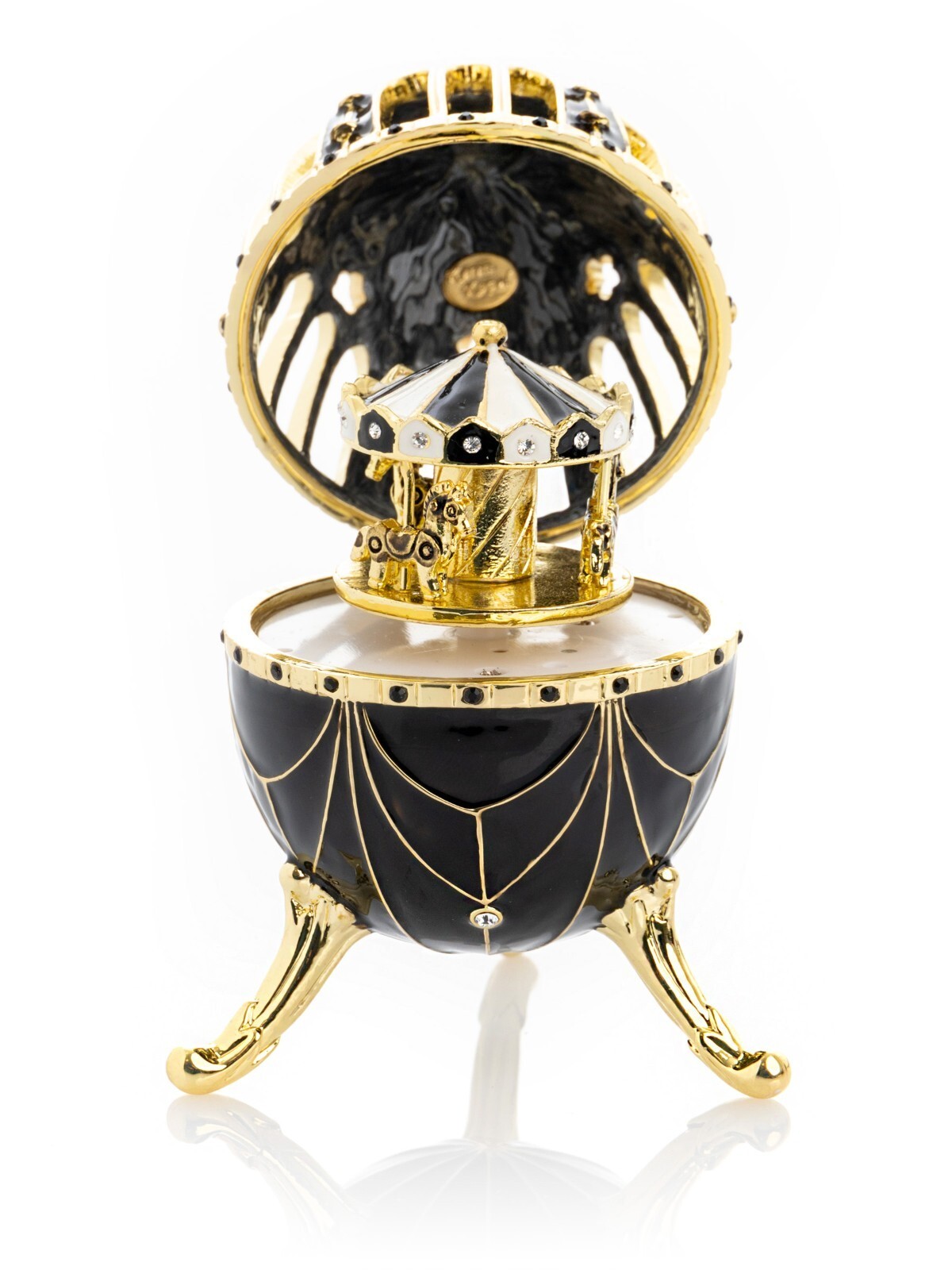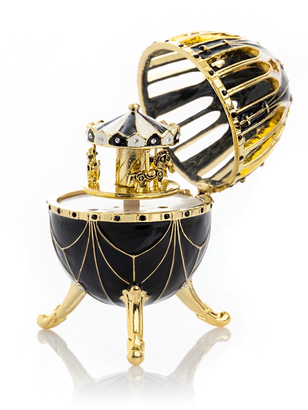 Keren Kopal black Music egg Horse Carousel Trinket box Decorated with Crystals