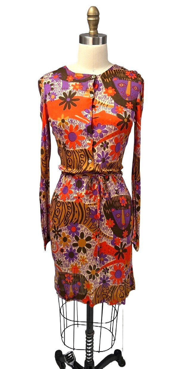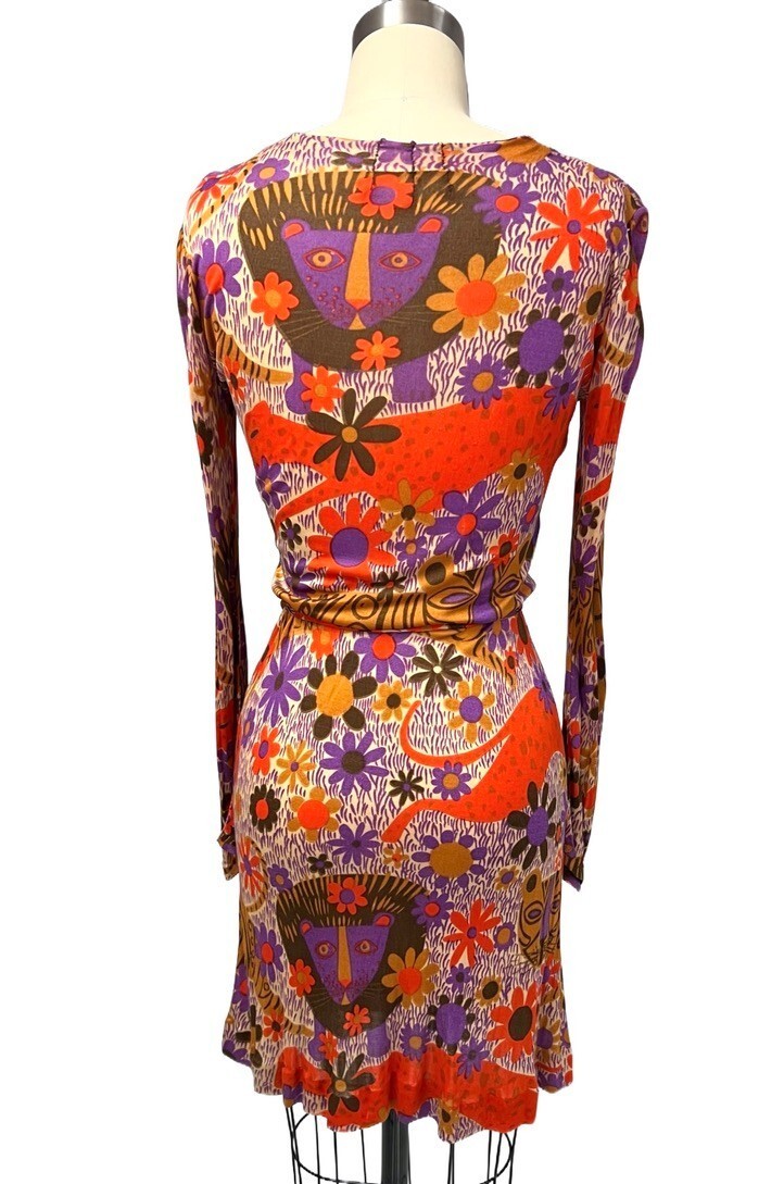 VTG Dress Form Fitting Mod Dress Silk Knit "Lion" Print 1970'S Size S-M Bessi?