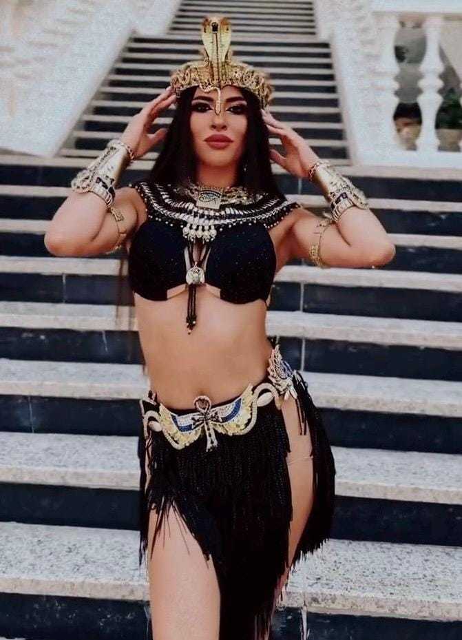 Cleopatra Belly Dance Costume,Performance black crystals Dance costume,Cosplay c