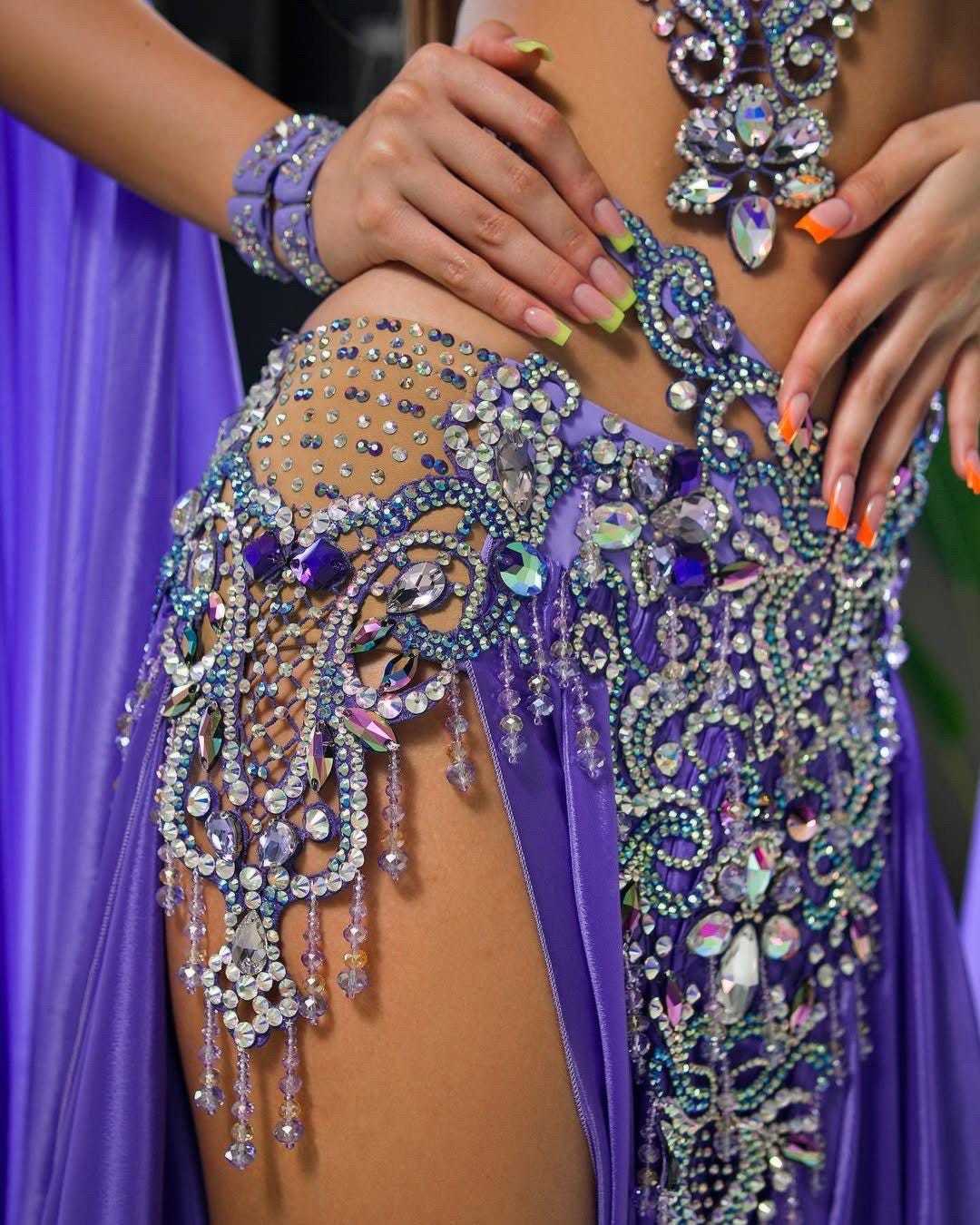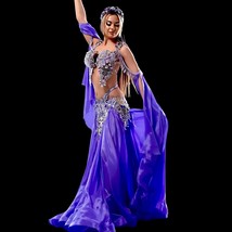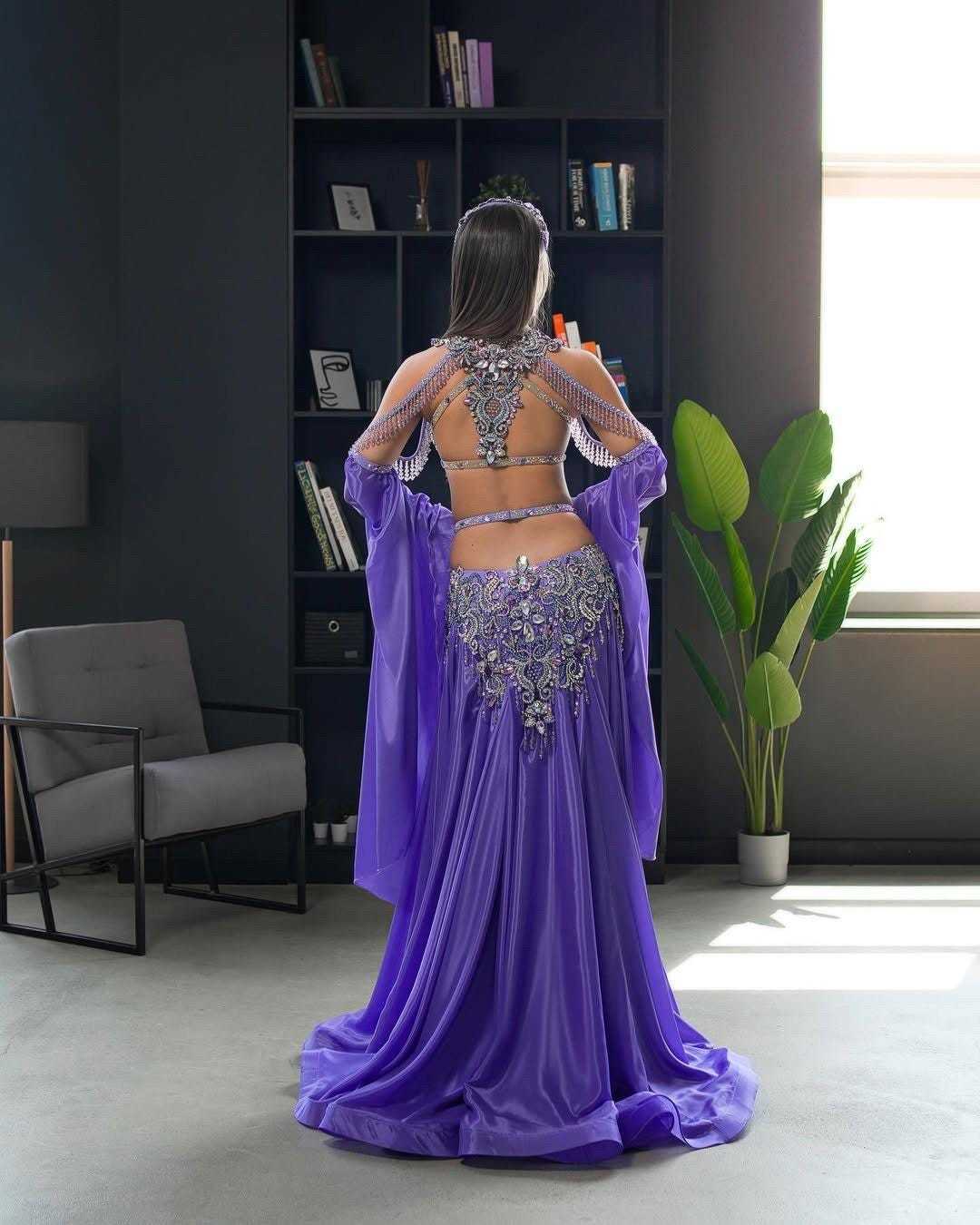 Purple Belly Dance Costume, Crystals Professional belly dance dress, Cosplay cos