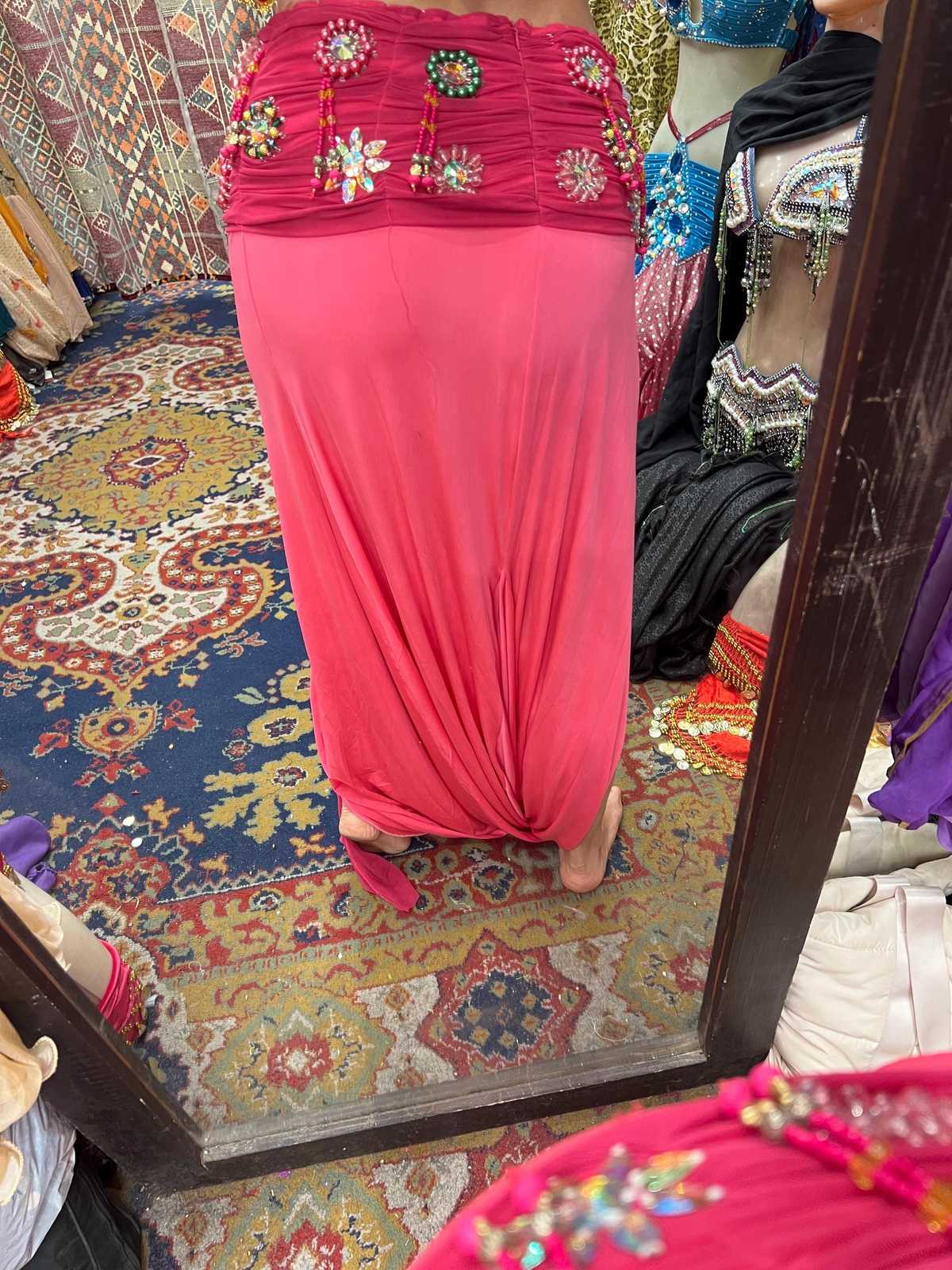 Not only is this costume a feast for the eyes, but it also embodies the spirit of celebration and artistry inherent in belly dance. The hand-sewn beads glisten brilliantly, adding an extra touch of glamour that is bound to make heads turn. With its vibrant colors and luxurious materials, this dress is not just a costume; it's an experience.