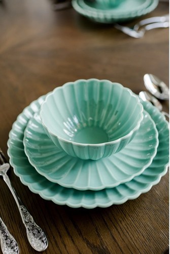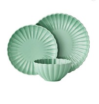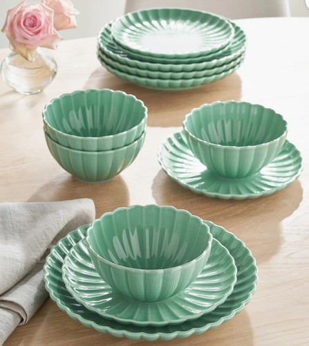 The Pioneer Woman Colette Scallop Green 12-Piece Stoneware Dinnerware Set