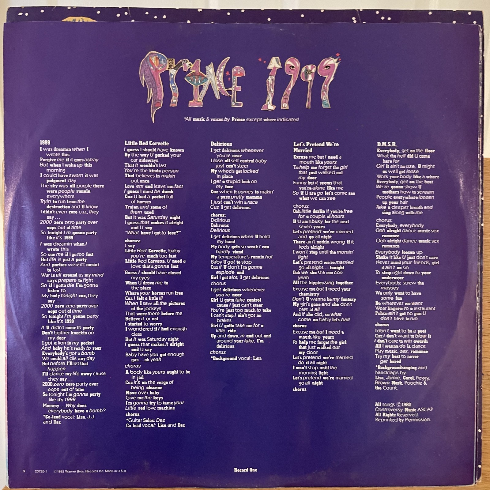 Prince 1999 Vinyl 2 LP WB 1-23720 VG+ 1st Pressing Little Red Corvette Delirious