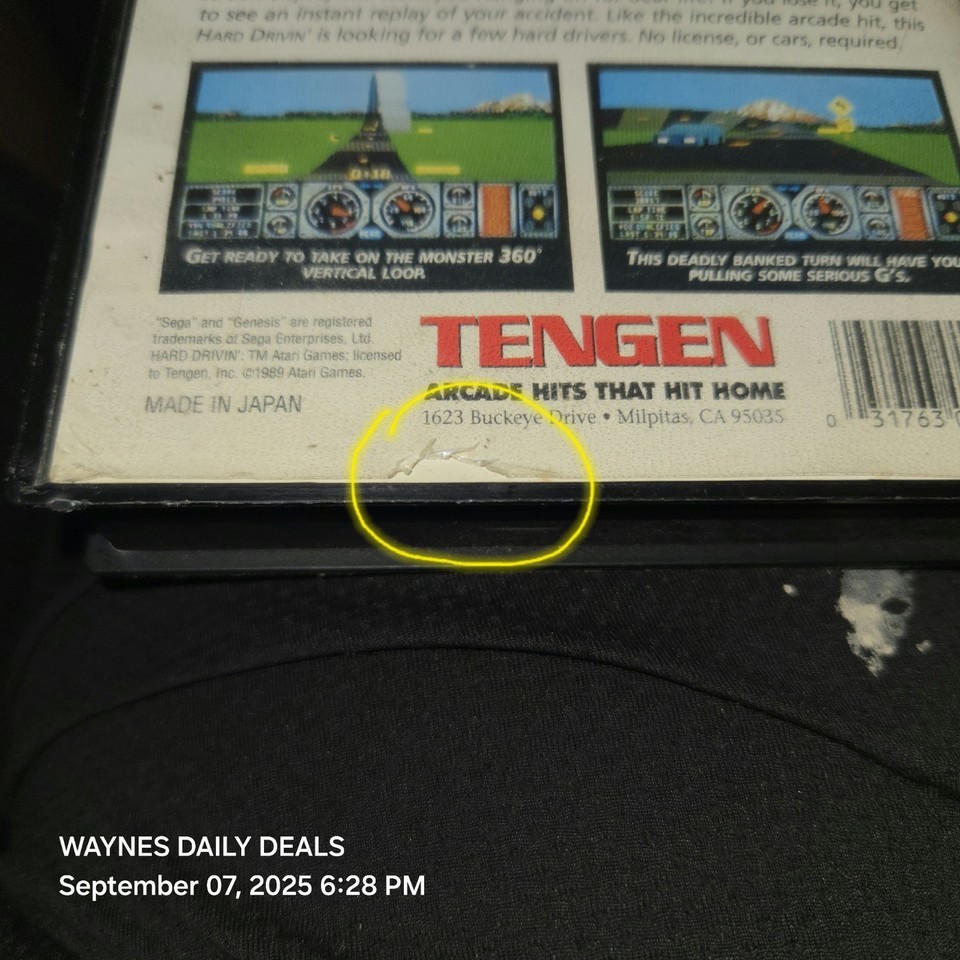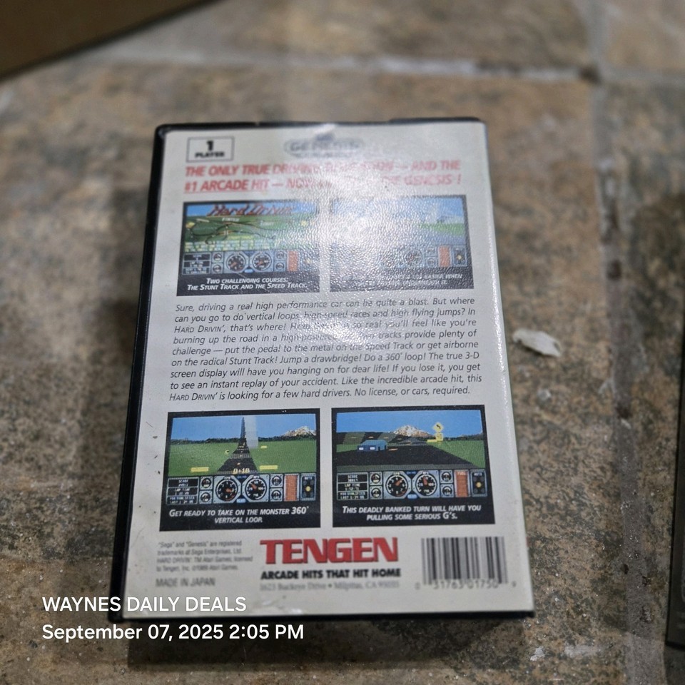 "Hard Drivin'" for Sega Genesis is a complete, tested, and working racing video game released in 1991 by Tengen. Check pics plastic cover on back at the bottom little tear