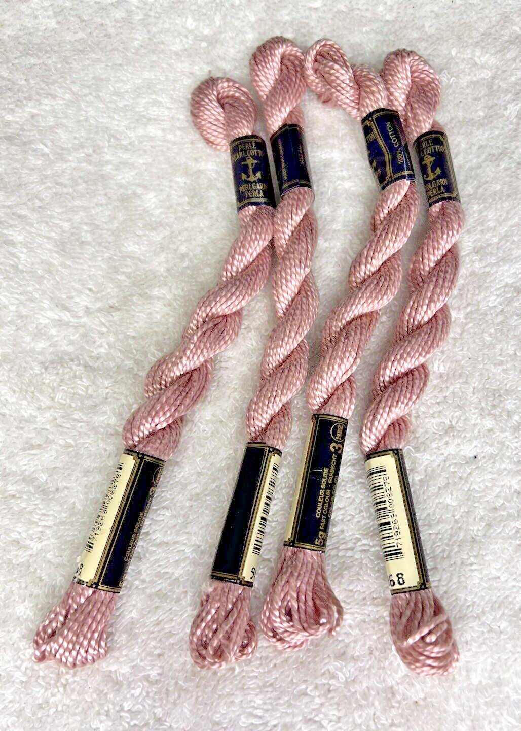 4 MINT Anchor Perle Pearl Cotton #968 Dusty Pink Embroidery Floss Vintage Skein