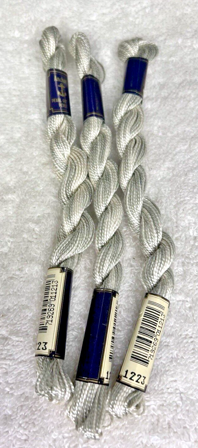 3 MINT Anchor Perle Pearl Cotton #1223 Multi Gray Embroidery Floss Vintage Skein
