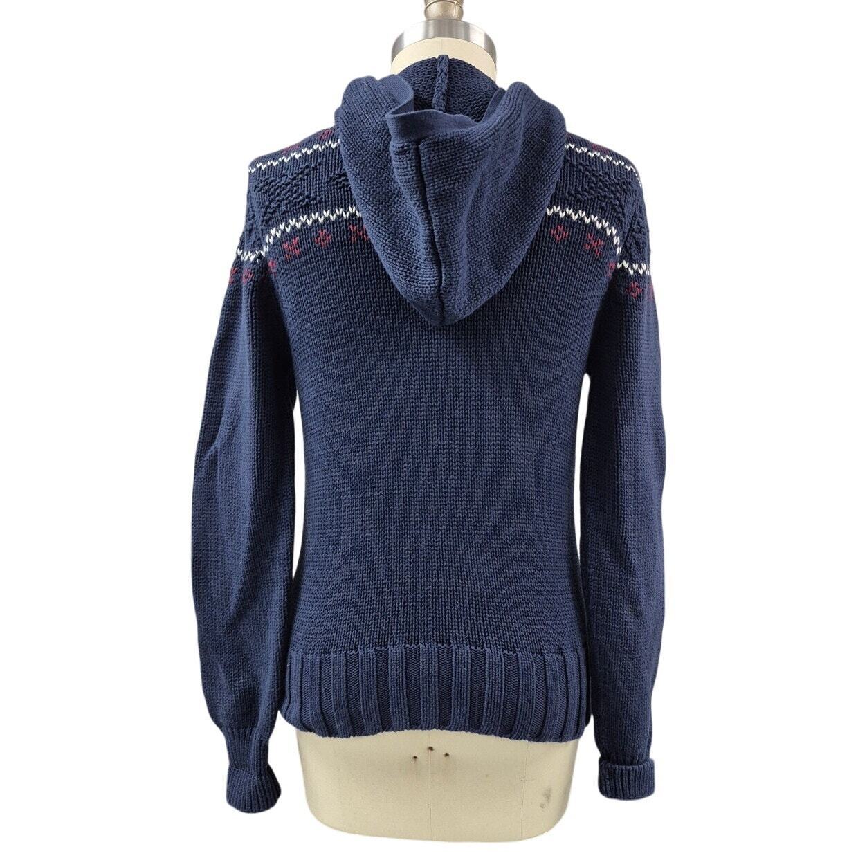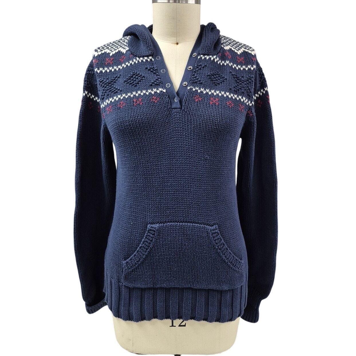 Polo Jeans Co. Ralph Lauren Cotton Sweater Hoodie Snap Closure 1990s Y2k Red/White/Blue Wide Ribbed Waistband Sz L in excellent condition.