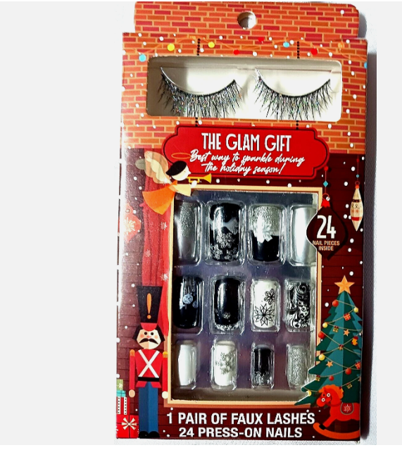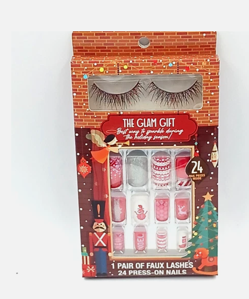 3 pack ( *24 Press-on Nails 1pair Of Faux Lashes 0eack pack *W Glitter