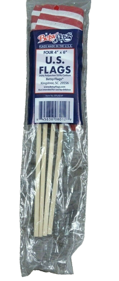 4 NEW Pack of 4 - (16)Betsy Flags American 4x6 in. Stick Flags, 10in Tall Dowel