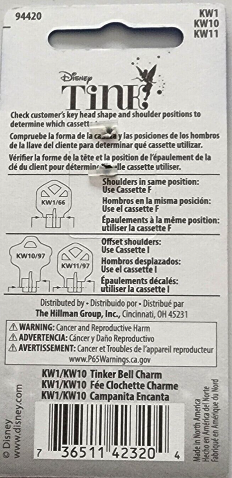 Disney Tinkerbell House Key Blank KW 1 / KW 10 / KW 11 Uncut
