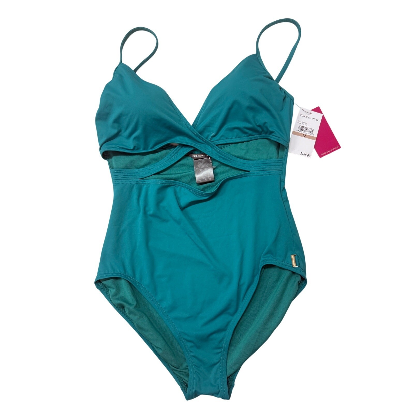 NEW Vince Camuto Wrap One Piece Swimsuit - Jet Set Solids-Riviera Teal Sz 12