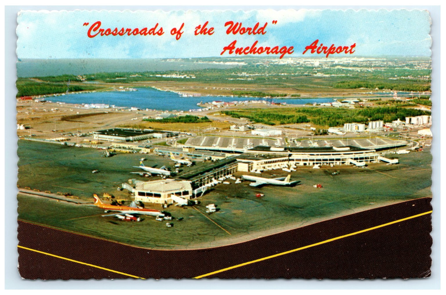 Vintage Airport Anchorage Alaska Aerial View Postcard