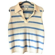 Experience pure luxury with this brand-new Rachel Zoe sweater vest. Crafted from two-ply cashmere, it's as soft and cozy as a kitten. The chic sleeveless design and open neck with a collar make it the perfect layering piece for effortless style. The timeless blue and cream stripe pattern adds a classic touch to any outfit. This is a must-have piece for elevating your collection.
